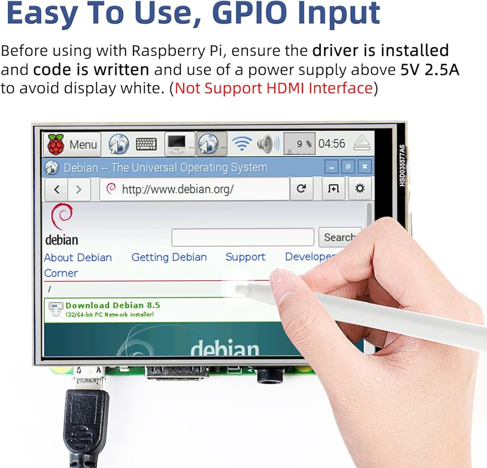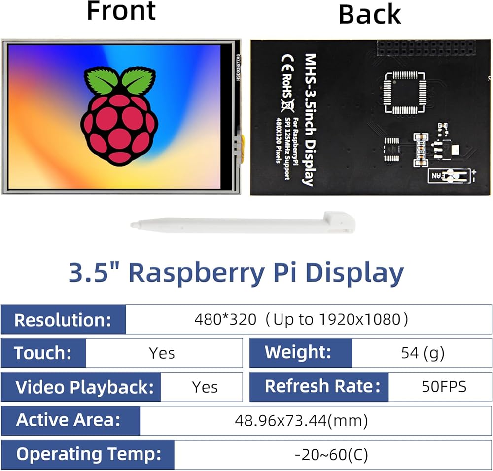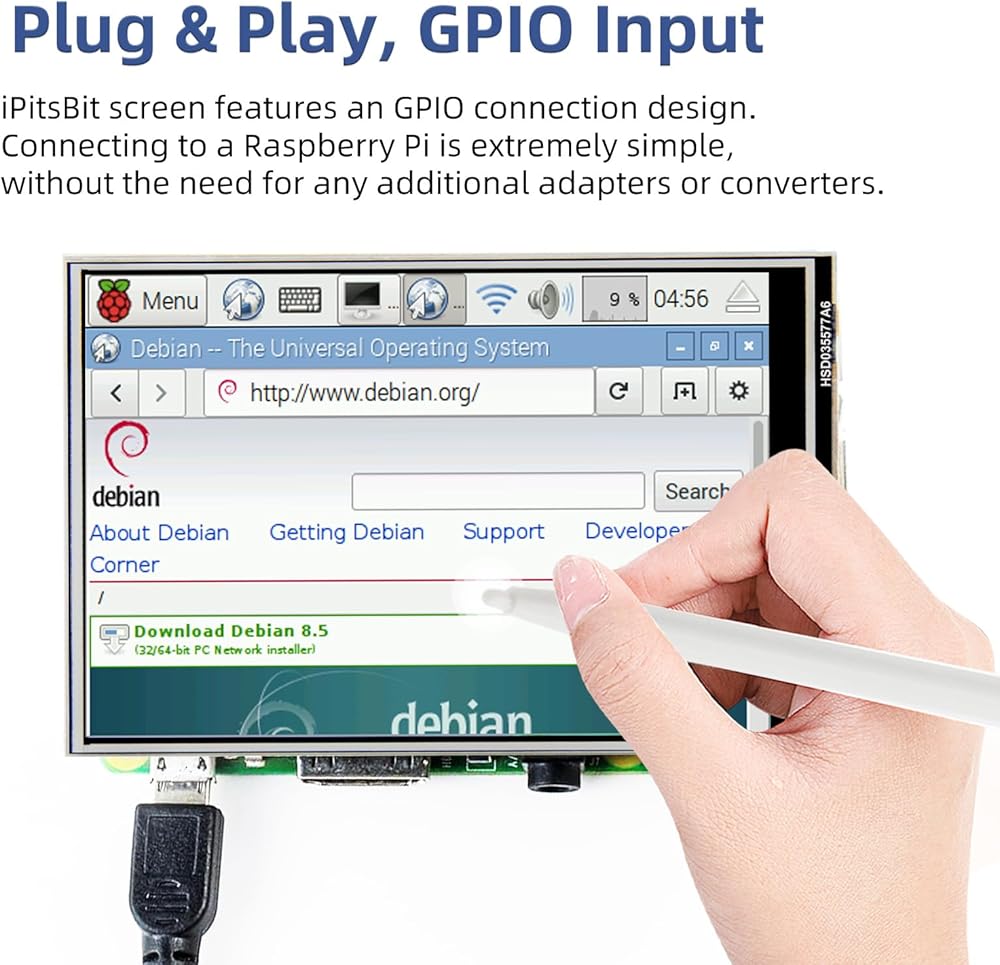 【شاشة صغيرة】شاشة iPistBit GPIO مقاس 3.5 بوصة مع شاشة LCD مقاس 320×480. لا توفر شاشة اللمس المقاومة TFT LCD جودة عرض ممتازة فحسب، بل يمكن استخدامها بسهولة باستخدام القلم. (لا يدعم HDMI.)