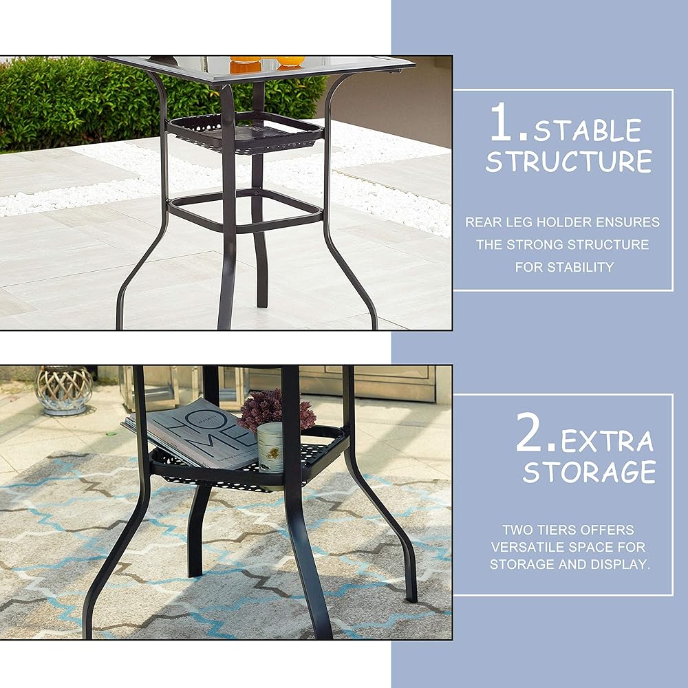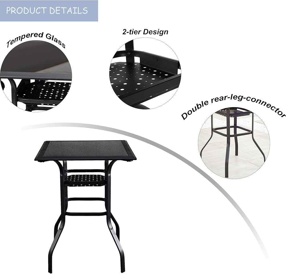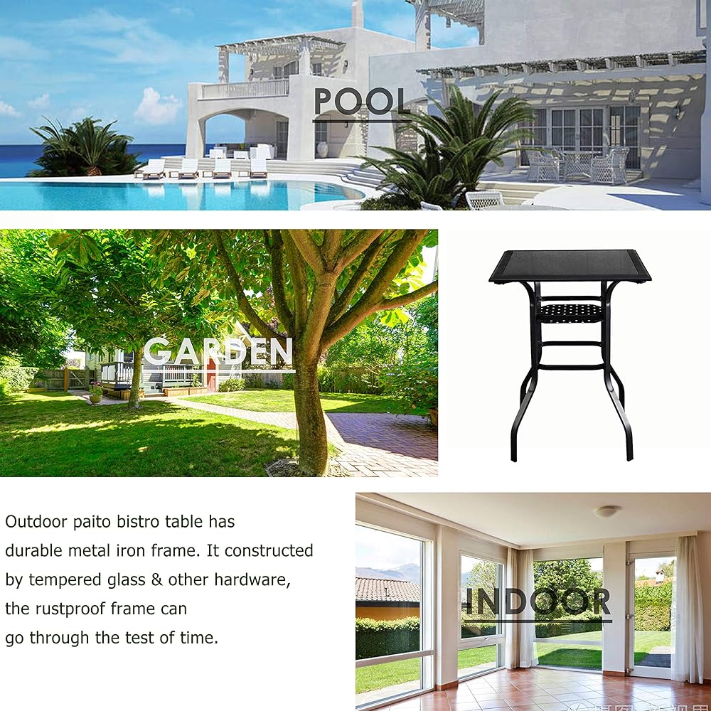 تحتوي طاولة بيسترو مربعة من الزجاج المقوى من لوككاتس هوم على إطار من طبقتين، مما يوفر مساحة واسعة للتخزين. كما أن التصميم البسيط والأنيق سيكون إضافة جميلة للفناء الخلفي أو الفناء أو حمام السباحة أو الشرفة. نتمنى أن تستمتع به مع عائلتك أو مع أصدقائك
