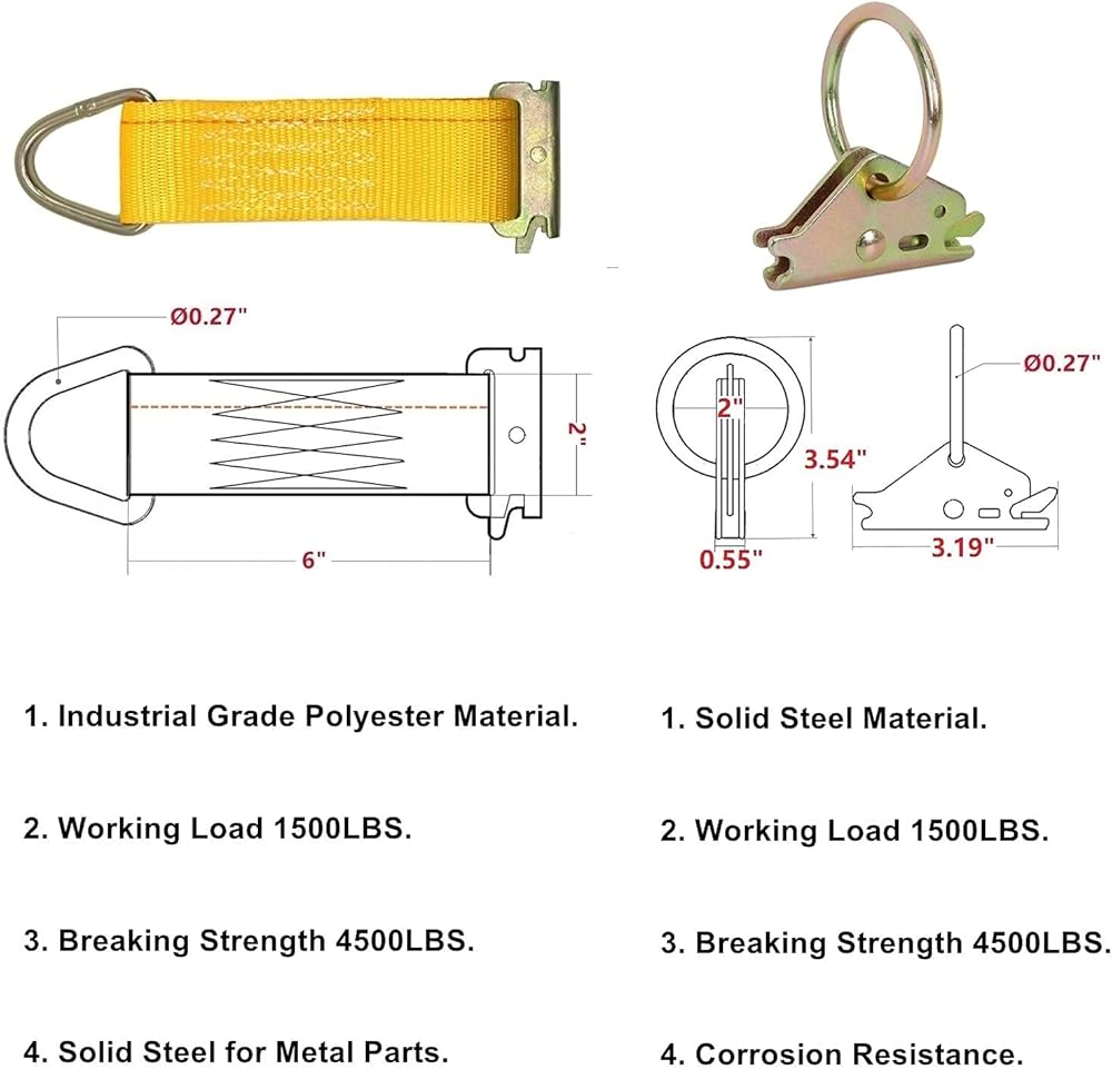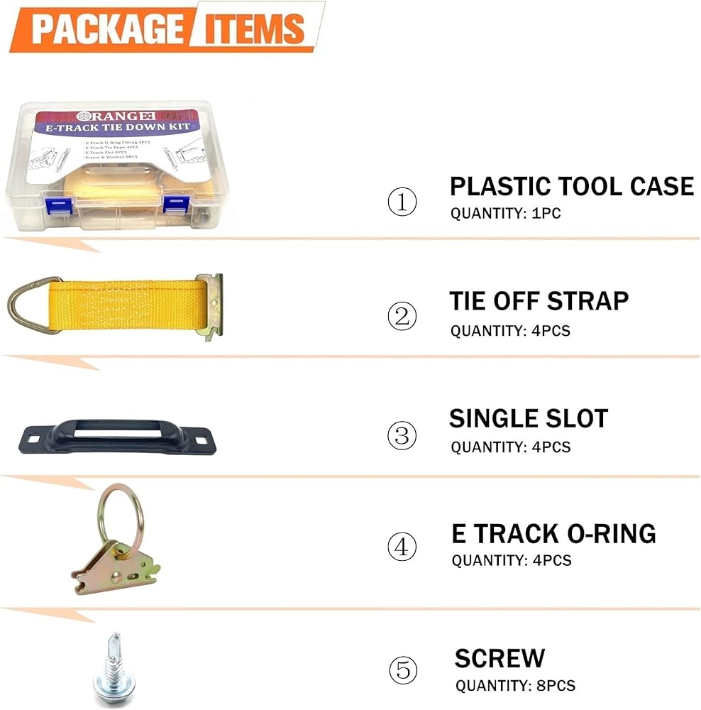 طقم ربط المسار E مكون من 4 قطع من ORANGEE - 4 فتحة واحدة للمسار E، تركيب 4 حلقات دائرية، 4 حبال ربط مع 8 براغي ذاتية الحفر للدراجات النارية، أحمال البضائع، الدراجات، المقطورات، شاحنات النقل الصغيرة والشاحنات