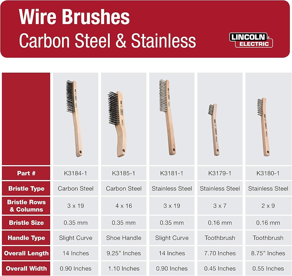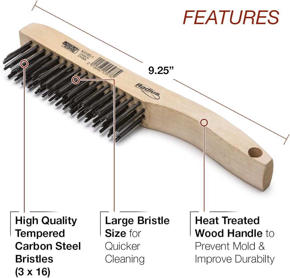 Lincoln Electric K3185-1 Carbon Steel Wire Brush, 4 x 16 Bristle Rows, 9.4" Length, Shoe Handle