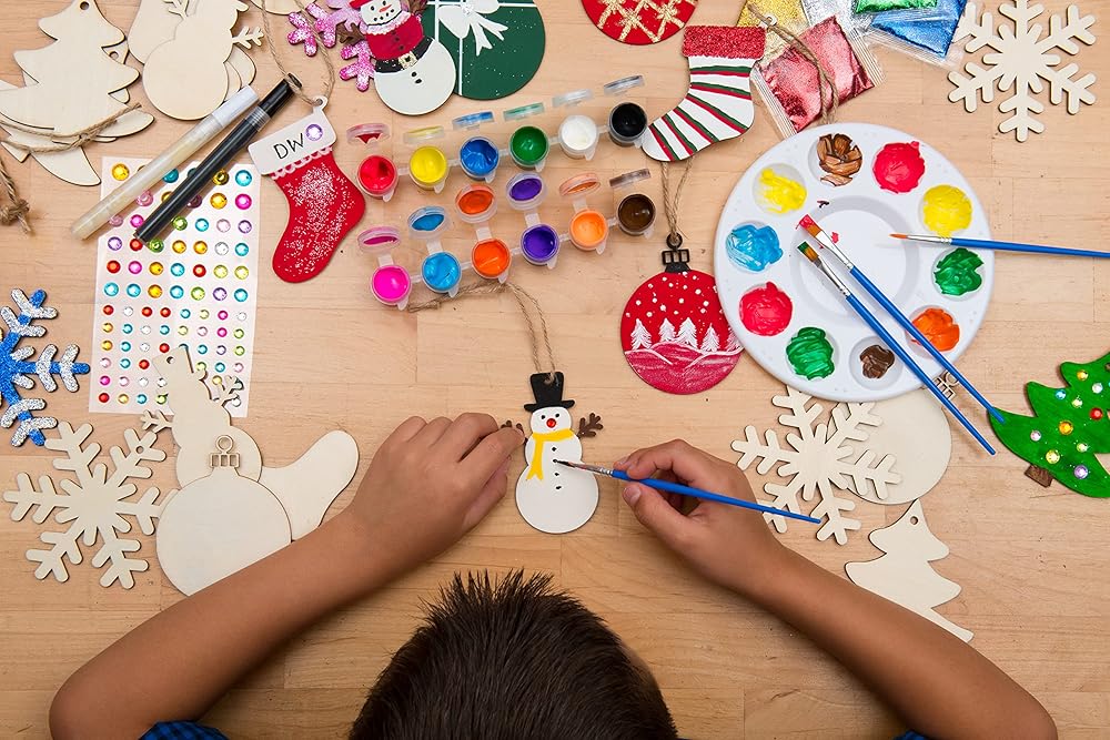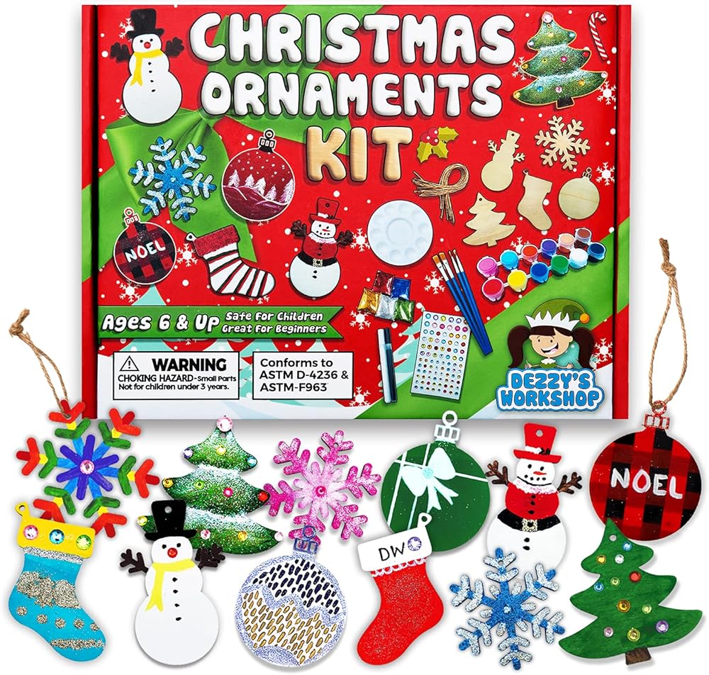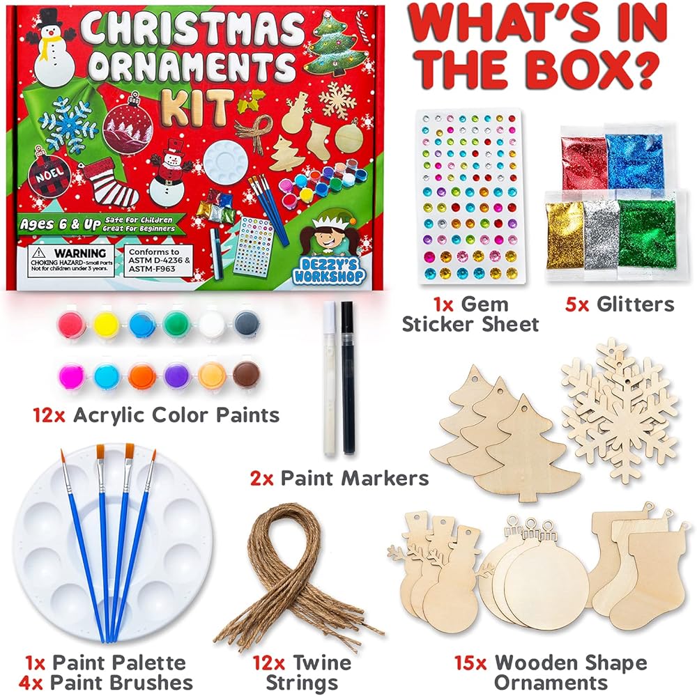 مجموعات حرفية عيد الميلاد من Dezzy's Workshop - الحرف اليدوية للعطلات للأطفال والكبار - تزيين وطلاء زخارف عيد الميلاد الخاصة بك - مجموعة فنية تزيين الزينة المنزلية الصنع - حرف عيد الميلاد جاهزة للصناعة