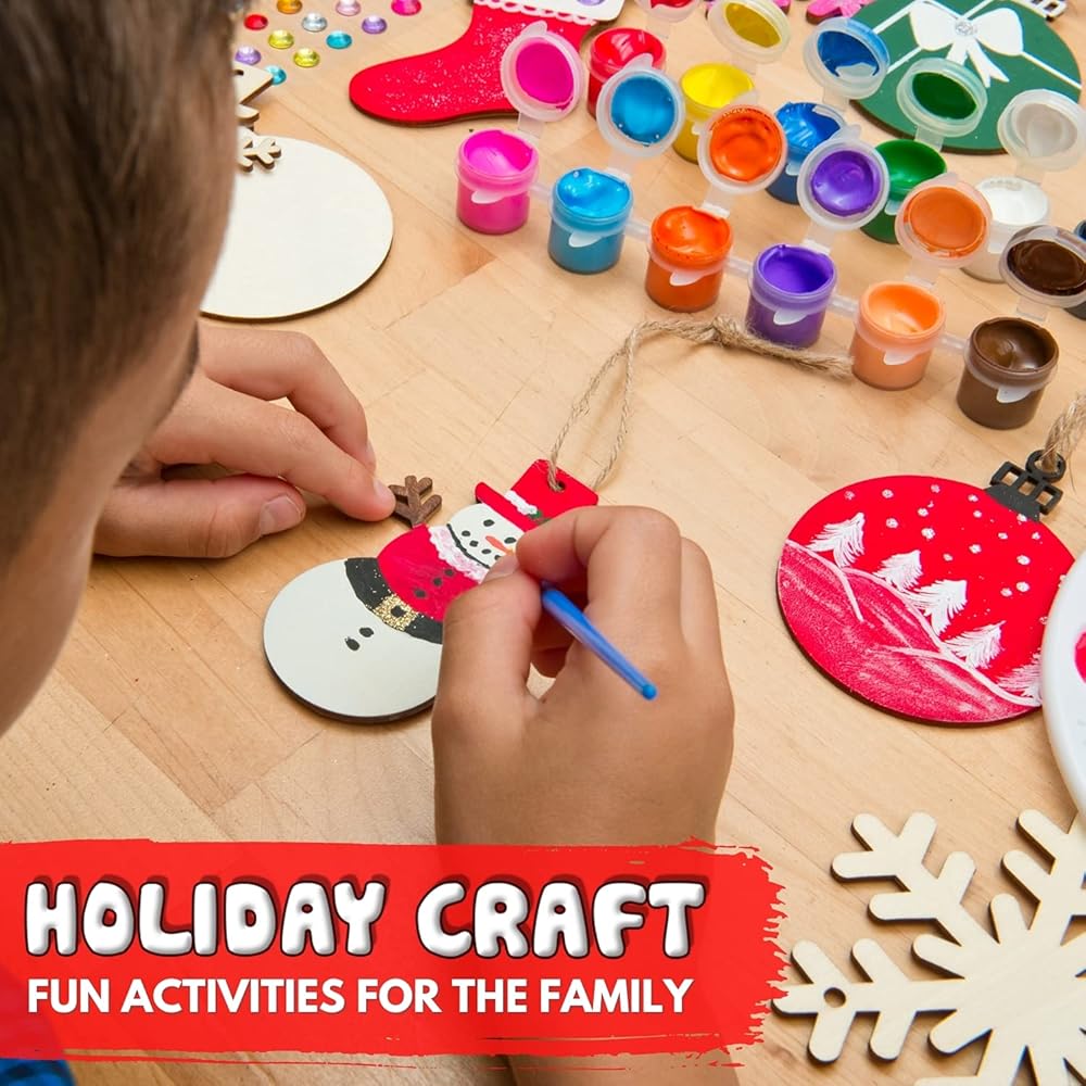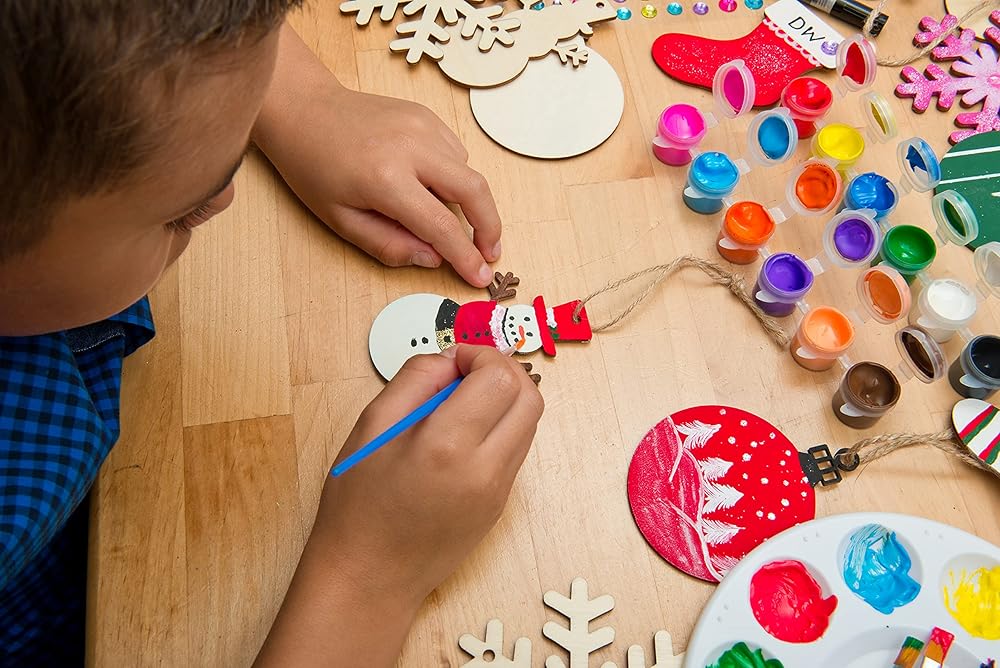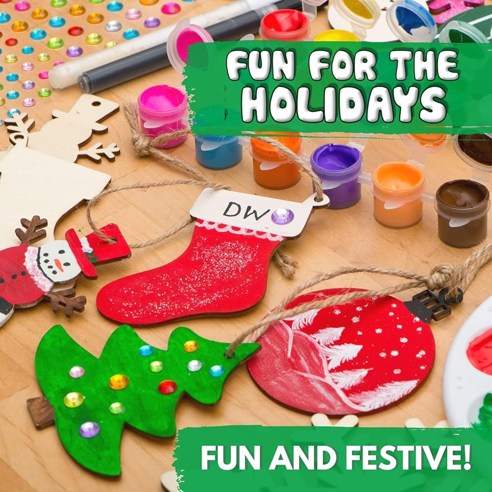مجموعات حرفية عيد الميلاد التي تصنعها بنفسك - احتفل بالموسم مع مجموعات حرفية عيد الميلاد الخاصة بنا والتي تتضمن 15 قطعة زينة خشبية، و15 خيطًا مجدولًا، و4 فرش طلاء، و12 طلاء أكريليك، و5 ألوان لامعة، ولوحة طلاء واحدة، و2 قلم طلاء، و1 عصا جوهرة.
