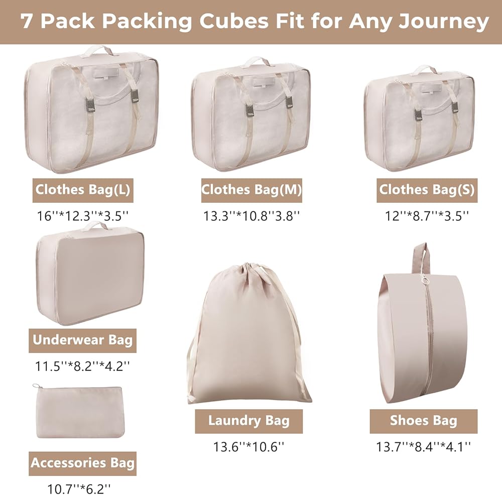✅اجعل رحلتك أكثر راحة - مع حقائب تنظيم السفر المكونة من 7 قطع من Lenporl لم تعد الأمتعة مهمة على الطريق. مجموعة واحدة فقط تكفي لحمل جميع مستلزمات السفر الخاصة بك مثل الملابس والأحذية والملابس الداخلية وما إلى ذلك، والحفاظ على حقيبتك مرتبة ومنظمة. سواء كنت تحمل حقيبة سفر محمولة على متن الطائرة، أو حقيبة دفل، أو حقيبة ظهر، أو حقيبة يد، فمن المؤكد أن حقائب التعبئة هذه ستناسب بشكل صغير دون أن تشغل مساحة كبيرة. يمكنك اصطحاب مكعبات السفر هذه للتعبئة في رحلات العمل ومغامرات التخييم والسفن السياحية والعطلات، للحفاظ على ملابسك وأدوات النظافة والإكسسوارات الأخرى منفصلة.