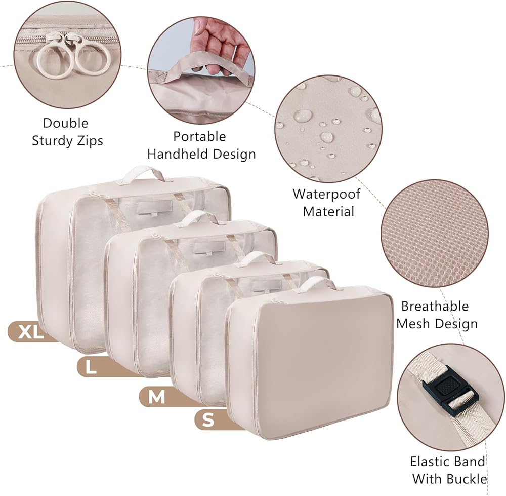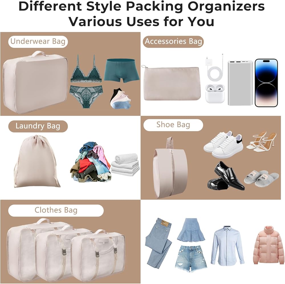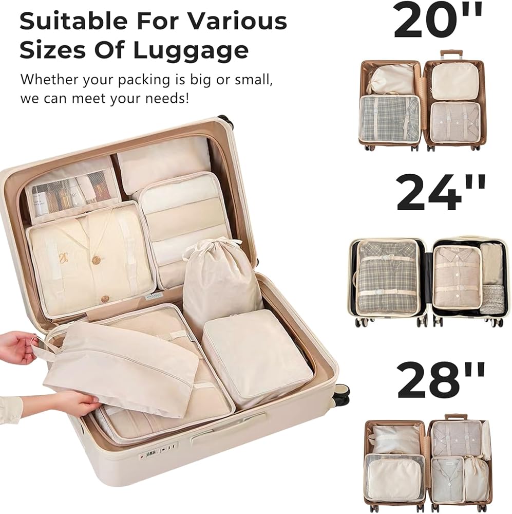 ✅مناسبة عالميًا لأي أمتعة - تتكيف مكعبات التعبئة لدينا بسهولة مع حقائب السفر والحقائب المحمولة من جميع الأحجام. يتيح تصميمها المرن سهولة الترتيب والتكديس، مما يزيد من كفاءة التخزين. تضمن مكعباتنا حلاً منظمًا وقابلاً للتخصيص لسفر سلس.