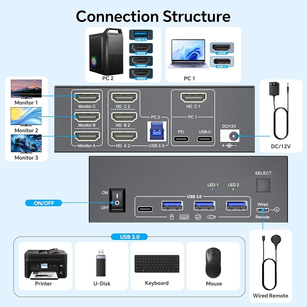 الأجهزة المدعومة بالطاقة العالية: تم تصميم مفتاح NAWEN USB بمنفذ إمداد طاقة Micro USB (5V 1A) إضافي. إذا كنت تستخدم بعض الأجهزة عالية الطاقة مثل SSD/HDD، وكاميرات USB، وسماعات الرأس، وما إلى ذلك، فقد تحتاج إلى توصيل طاقة إضافية لأداء مستقر. (مع كابل DC5V)، أيضًا مع زر تبديل USB وتصميم مؤشر LED، بحرية قم بتبديل أجهزة USB المتعددة/بطاقة TF بين جهازي كمبيوتر بنقرة واحدة واعرف حالة العمل بوضوح.