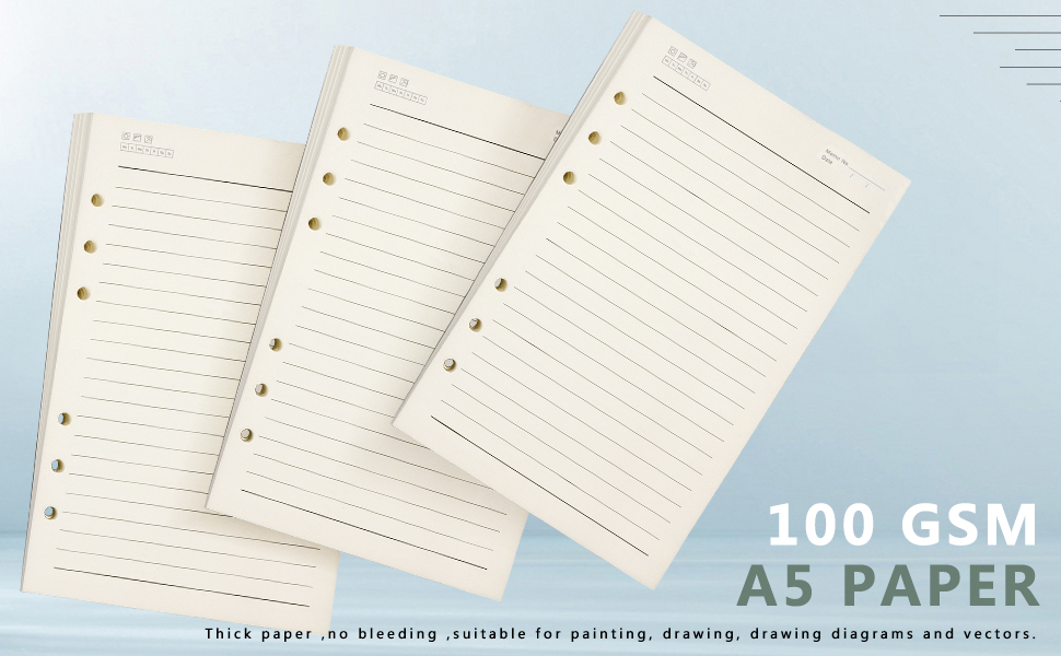 [مادة ممتازة] ورق A5 ممتاز قابل لإعادة الملء مصنوع من ورق سميك 100 جرام في المتر المربع، بدون شوائب، ناعم، مقاوم للاهتراء، لن ينزف من خلاله، رائع للكتابة والقائمة والرسم والتسجيل والتخطيط وما إلى ذلك، للمدرسة والمكتب والسفر استخدام يومي.