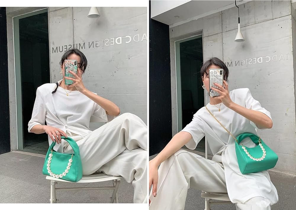 حقيبة كلاتش جلدية للنساء بتصميم صغير من جلد الماعز 90S مع أشرطة من اللؤلؤ