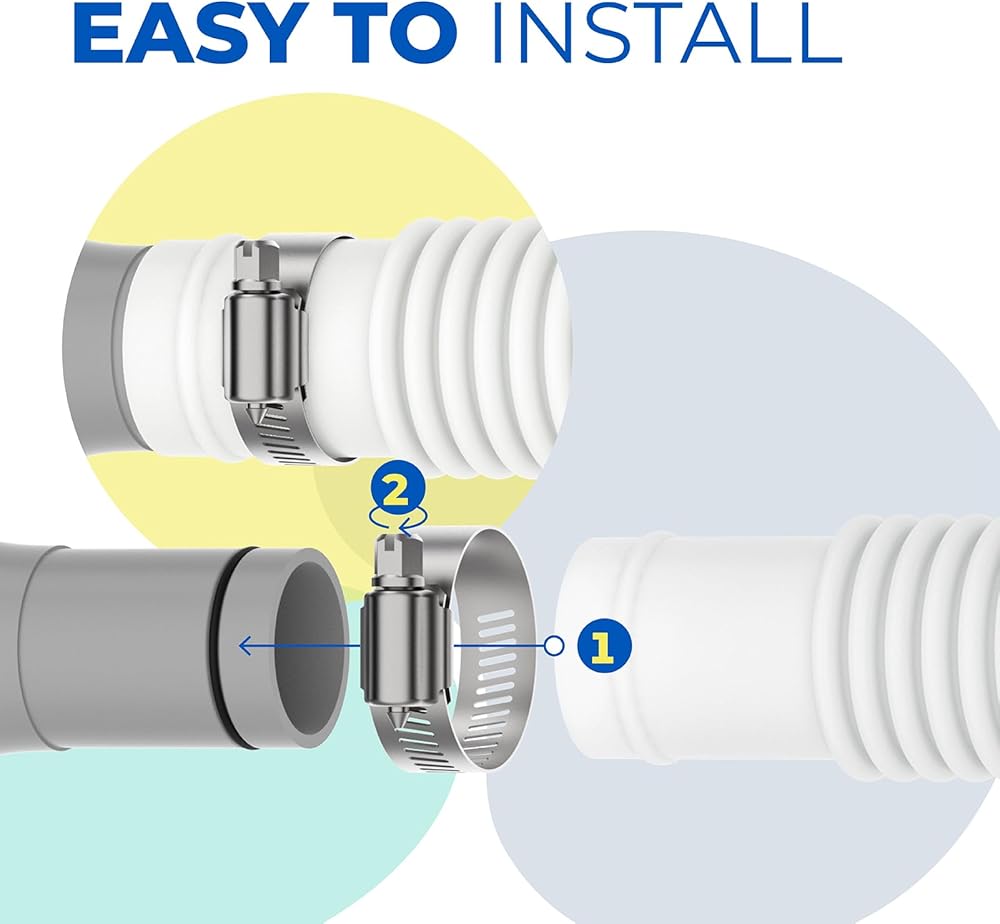 خرطوم توصيل فلتر حمام السباحة الخاص بنا سهل التركيب في دقائق، ما عليك سوى استخدام مفك البراغي والكماشة، دون الحاجة إلى لوازم إضافية. (يرجى ملاحظة: مفك البراغي والكماشة غير متضمنة)