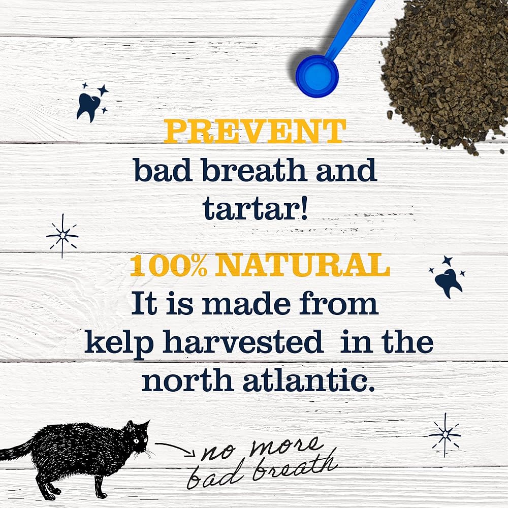 Natural Plaque Remover for Cat Oral Health: Made with natural seaweed harvested in the North Atlantic. Formulated for pet dental cleaning, this plaque remover for pets works from the inside out.