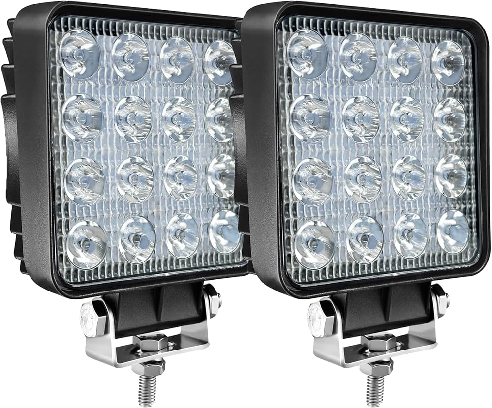 【إضاءة بيضاء فائقة السطوع】مصابيح العمل على الطرق الوعرة الخاصة بنا مزودة بمصباح LED عالي الكثافة 16 قطعة × 3 وات، إجمالي 48 وات عند درجة حرارة لون 6,000 كلفن. يمكنه إضاءة منطقة الرؤية الأمامية بالكامل، مما يمنحك قيادة مريحة وآمنة.