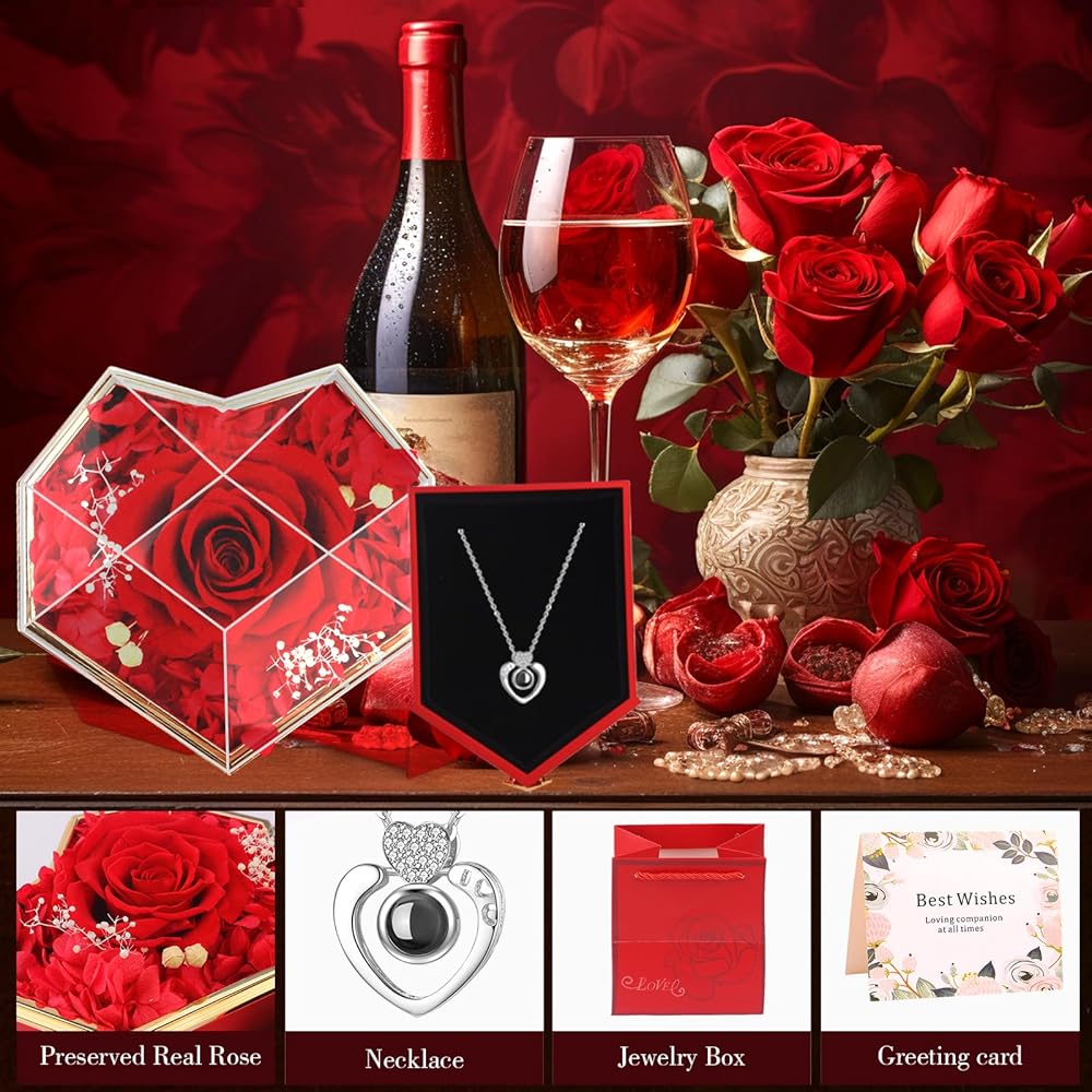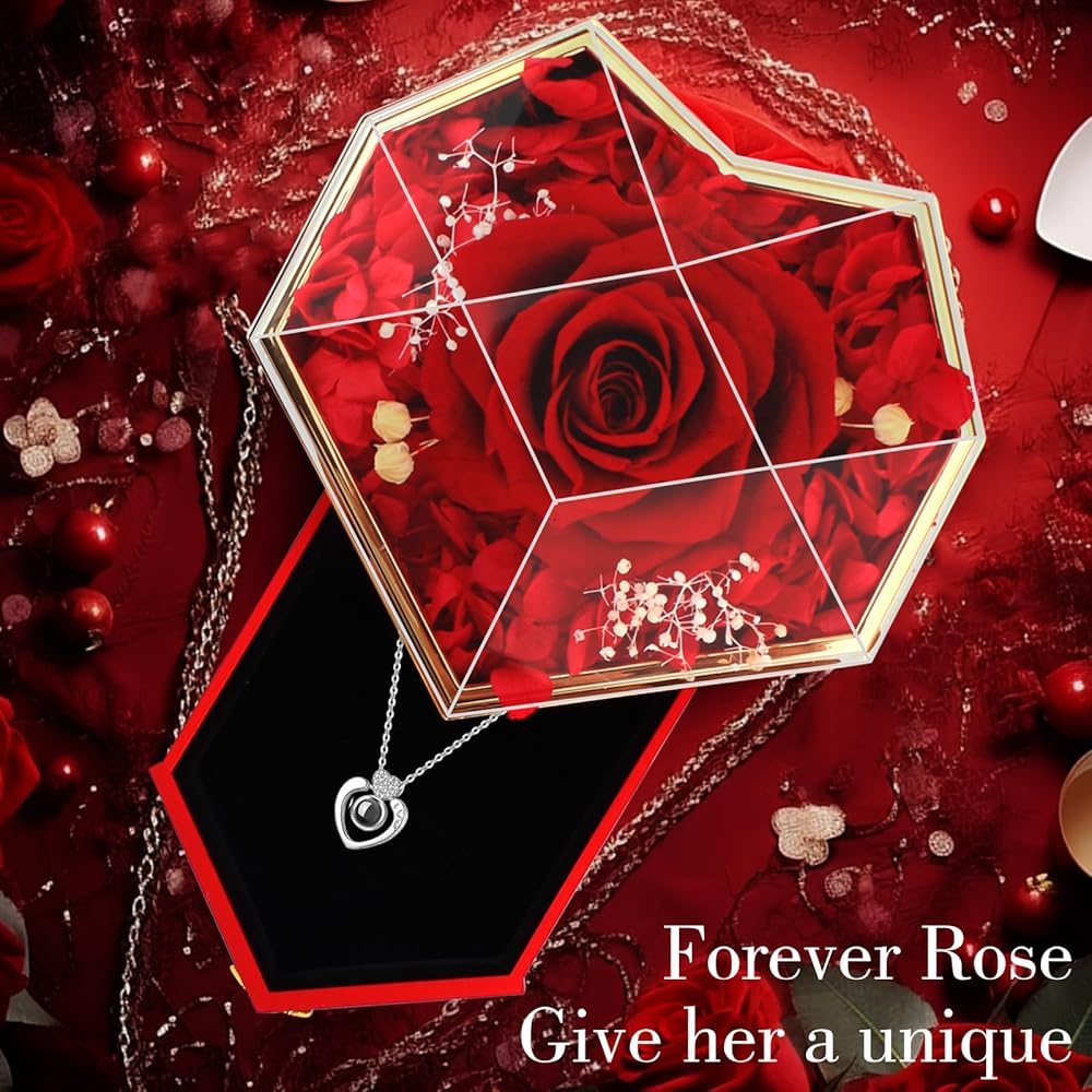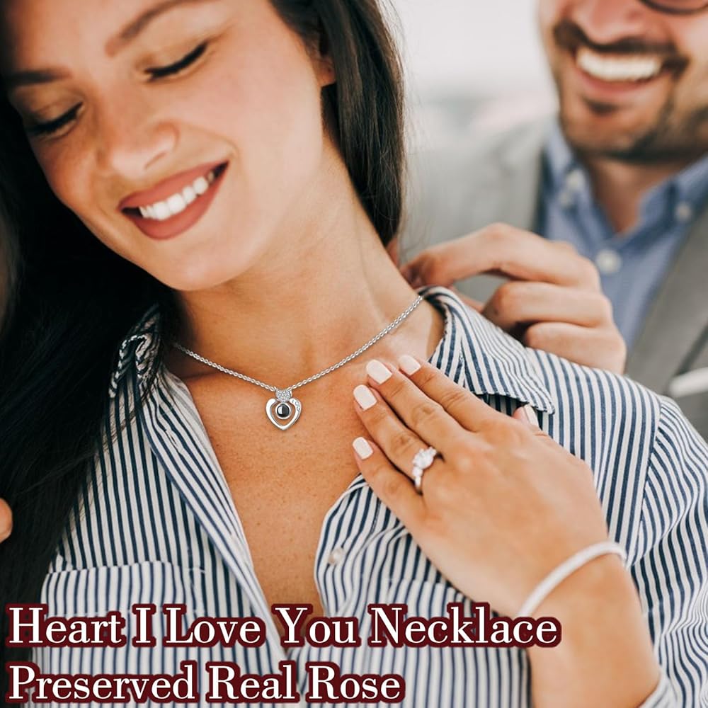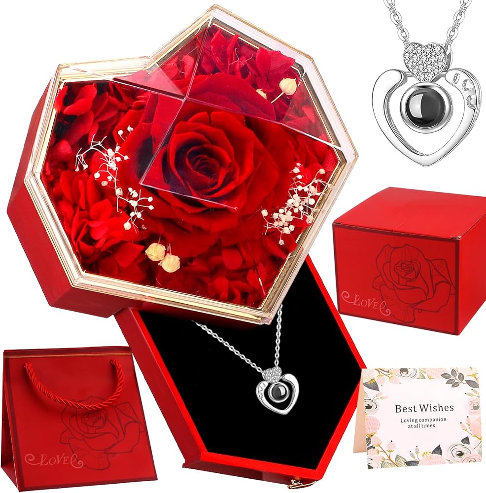 Swiftbuyo الحفاظ على وردة حمراء حقيقية مع قلادة أحبك 100 لغة، هدايا للنساء أمي جدتها صديقتها أختها صديقة زوجة، فكرة هدايا في عيد الميلاد، عيد الحب، عيد الأم