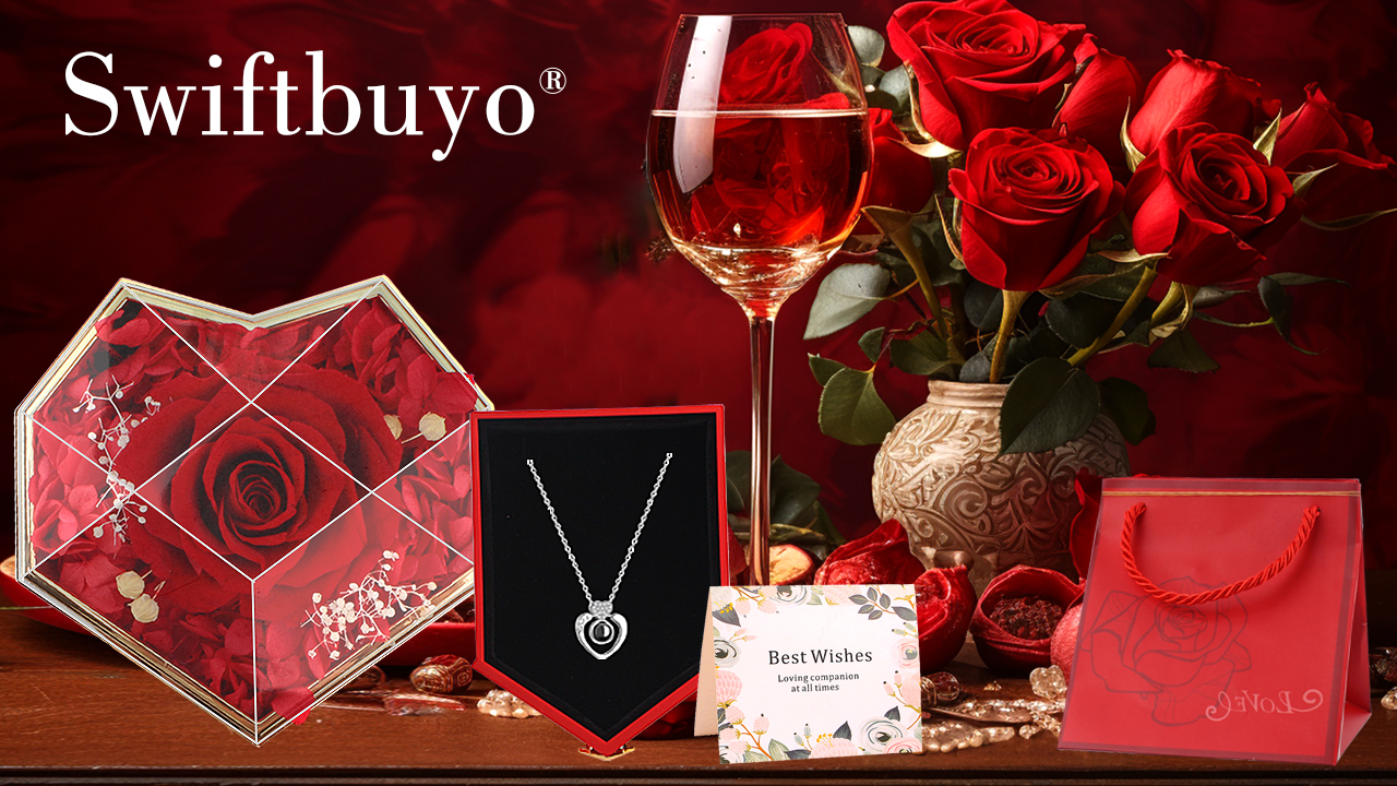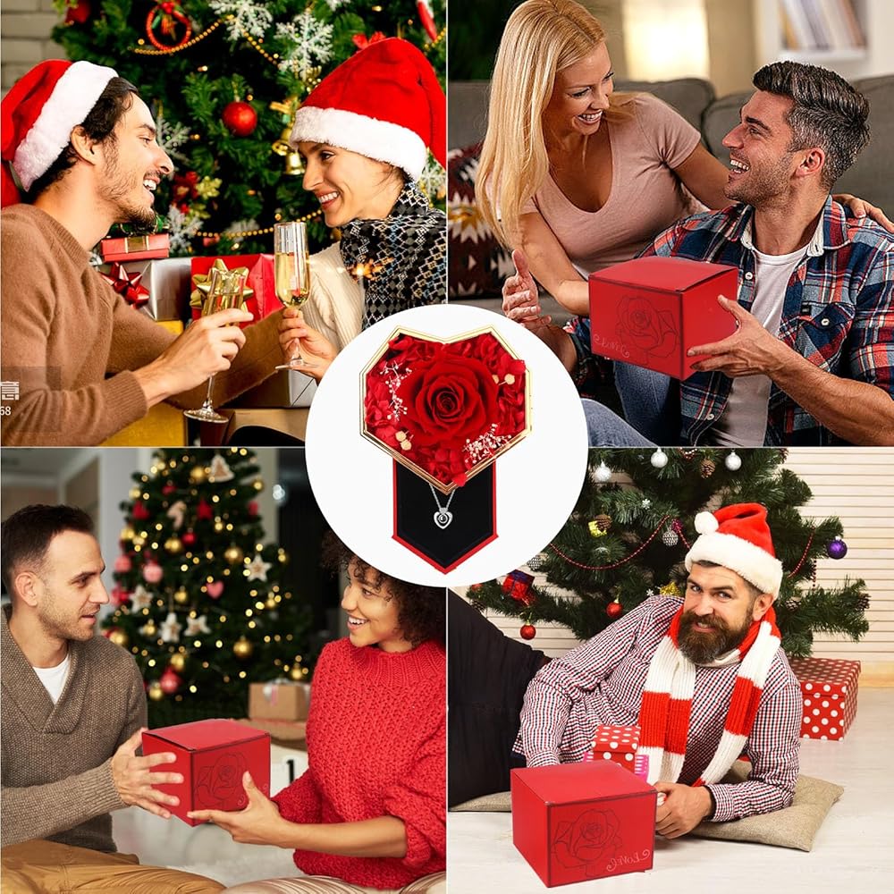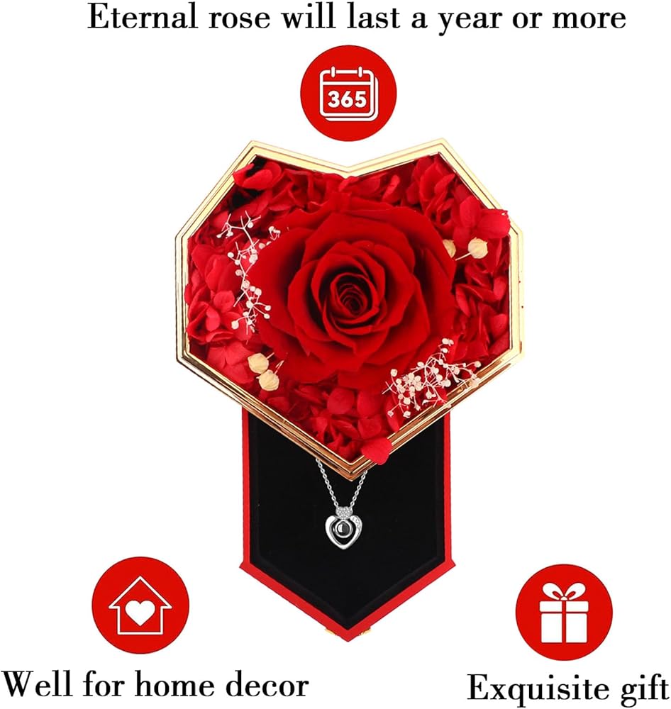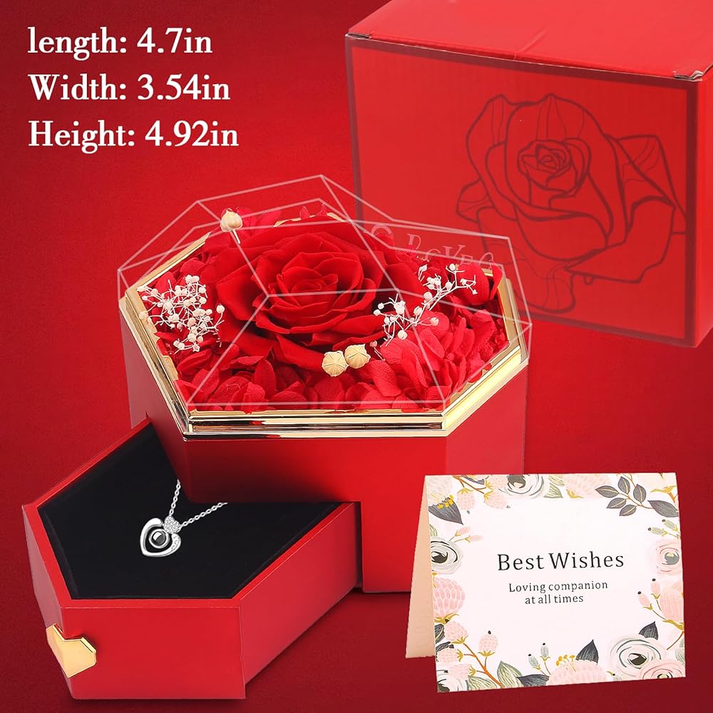 Swiftbuyo الحفاظ على وردة حمراء حقيقية مع قلادة أحبك 100 لغة، هدايا للنساء أمي جدتها صديقتها أختها صديقة زوجة، فكرة هدايا في عيد الميلاد، عيد الحب، عيد الأم