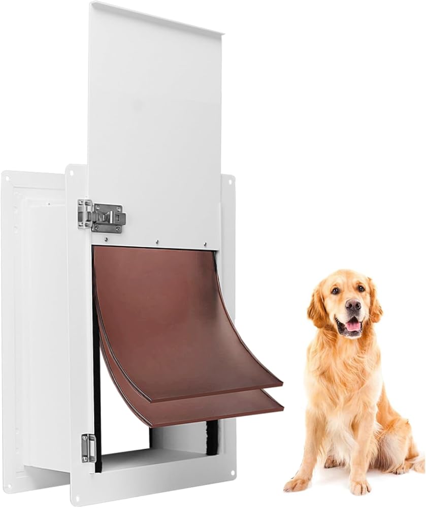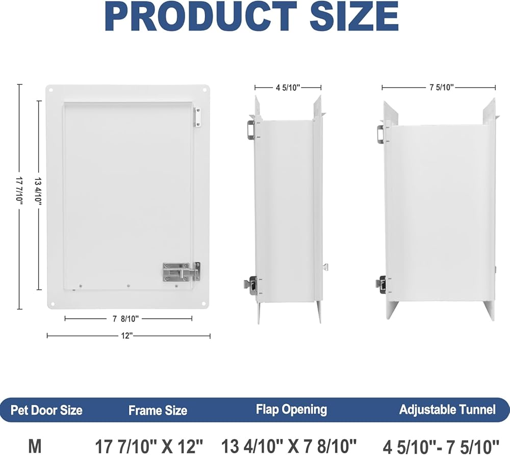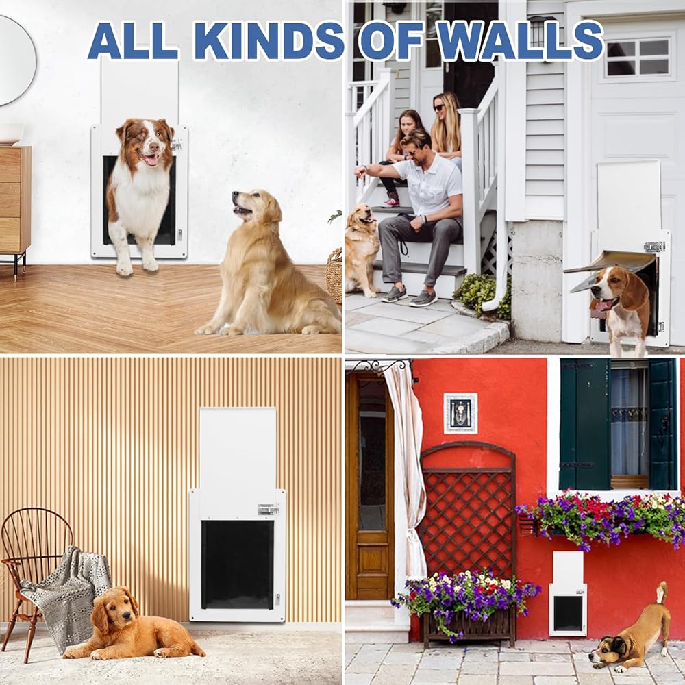 باب الكلب Sidasu للجدار قابل للتعديل وعمق باب الحيوانات الأليفة للجدار مع قفل ألومنيوم آمن، باب الكلب مناسب للجدران الداخلية والخارجية، متوسط ​​(الحيوانات الأليفة حتى 40 رطل)
