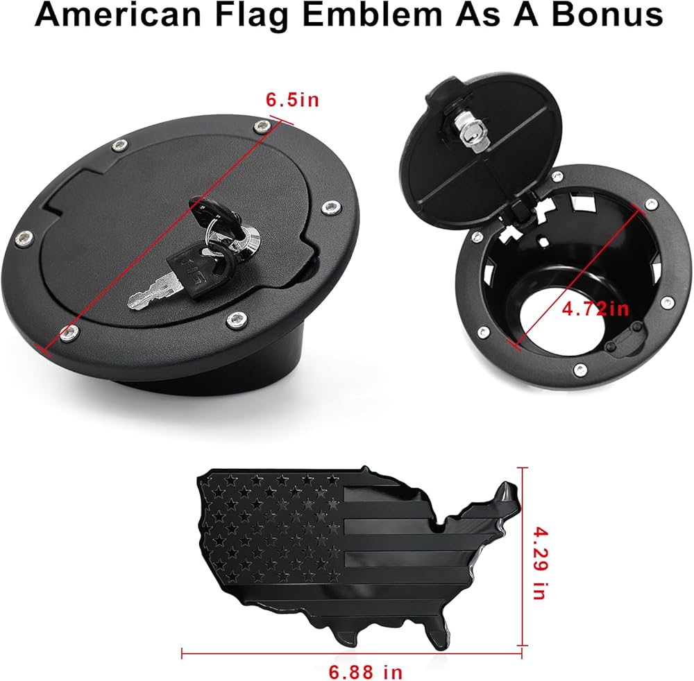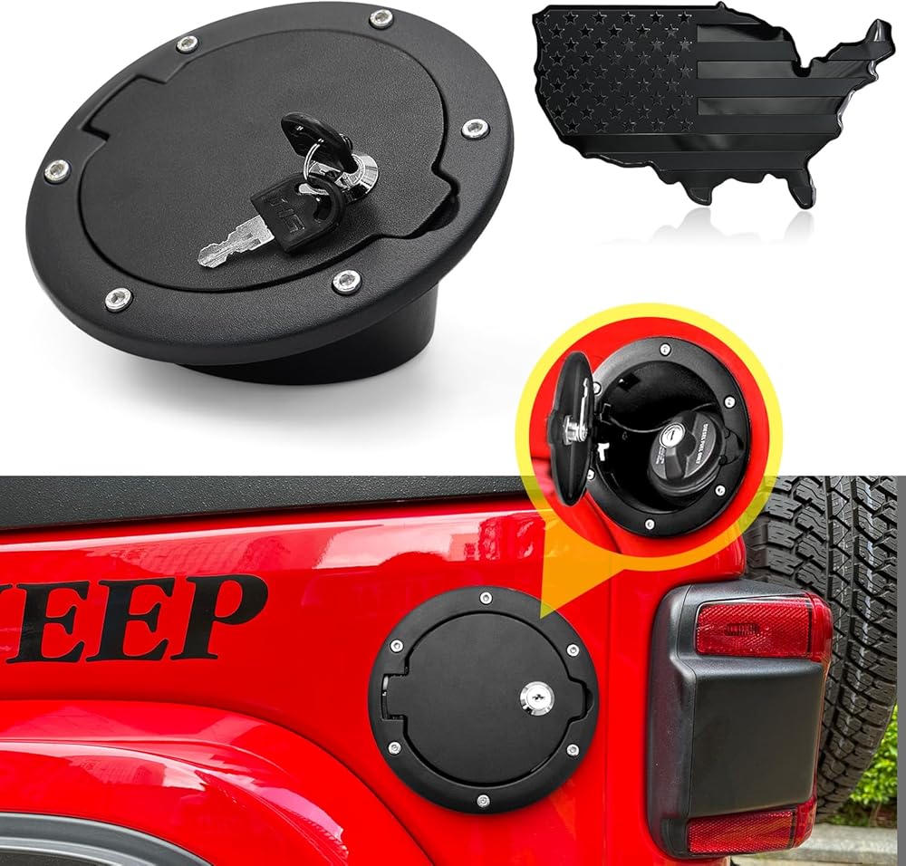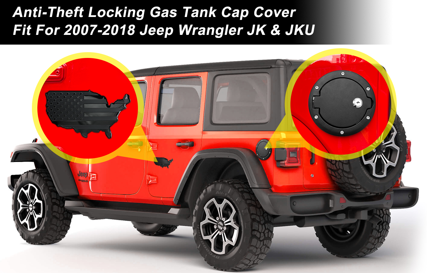 غطاء غطاء غاز JEEP JK سهل التركيب لملحقات الجيب: قم بترقية مظهر جيب الخاص بك دون عناء باستخدام غطاء غطاء الغاز سهل التركيب للغاية، مما يسمح لك بالسير على الطريق في وقت قصير. فاجئ صديقًا محبًا لسيارات الجيب أو أحد أفراد العائلة بالهدية المثالية - غطاء غطاء غاز قابل للقفل لسيارة جيب رانجلر وشعار العلم الأمريكي الذي يجسد شغفهم بالمركبات والبلد.