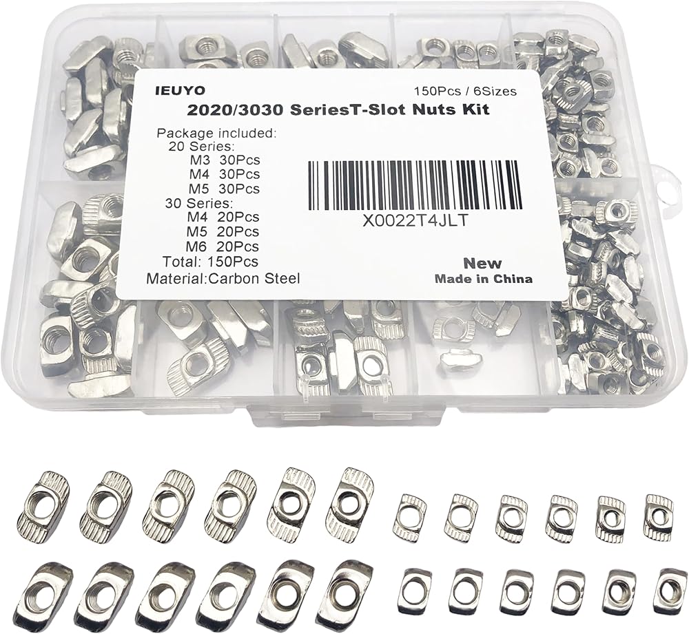 صواميل IEUYO 2020 3030 Series T، M3 M4 M5 M6 T، صامولة تثبيت رأس المطرقة لملحقات الألومنيوم، 120 قطعة/6 مقاسات