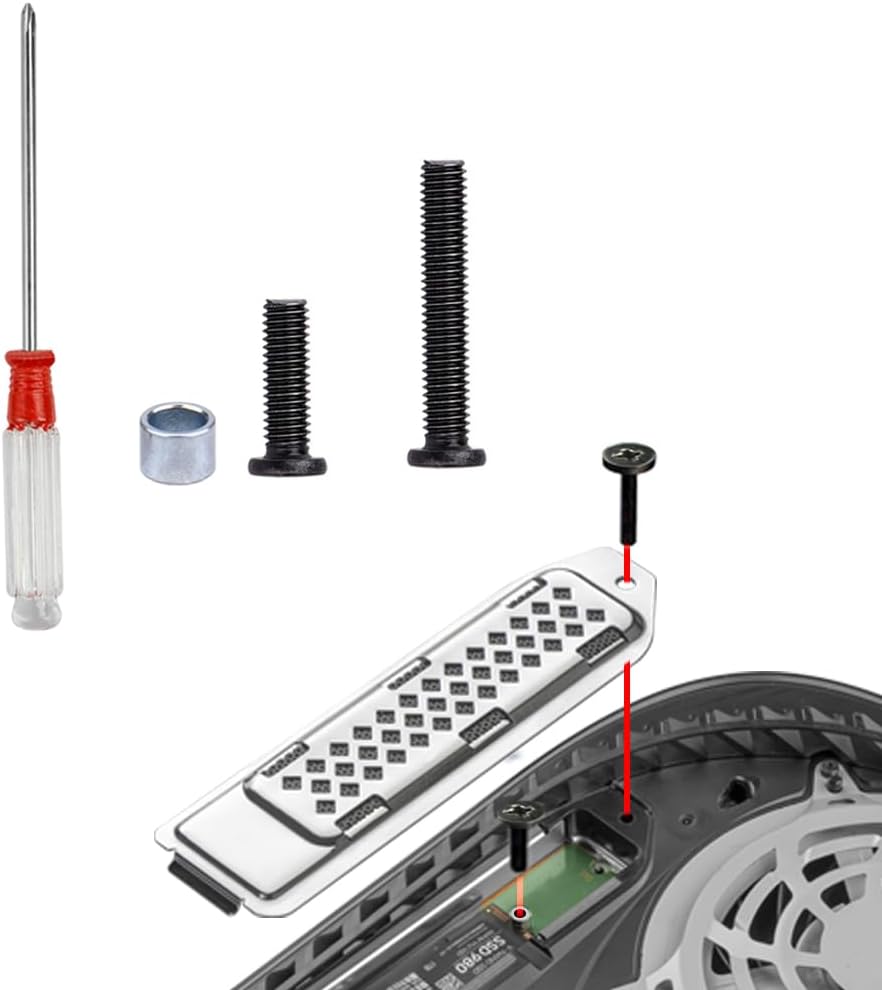 - مجموعات براغي لجهاز PS5 SSD: تشتمل العبوة على برغي أو SSD، ومسمار لغطاء تمديد SSD، ومفك براغي، لجهاز PS5 وPS5 Slim فقط