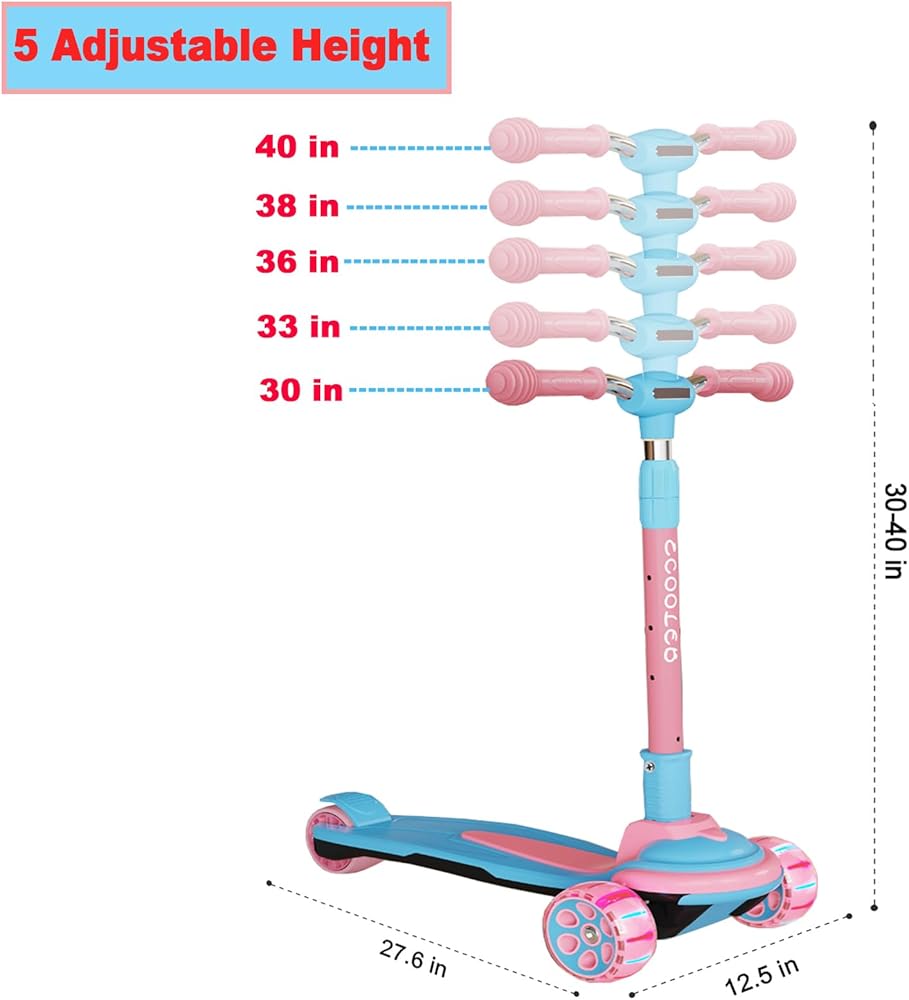 【5 Adjustable Heights】Our scooter has 5 adjustable heights(30/33/36/38/40inches).Suitable for Ages 3-12.