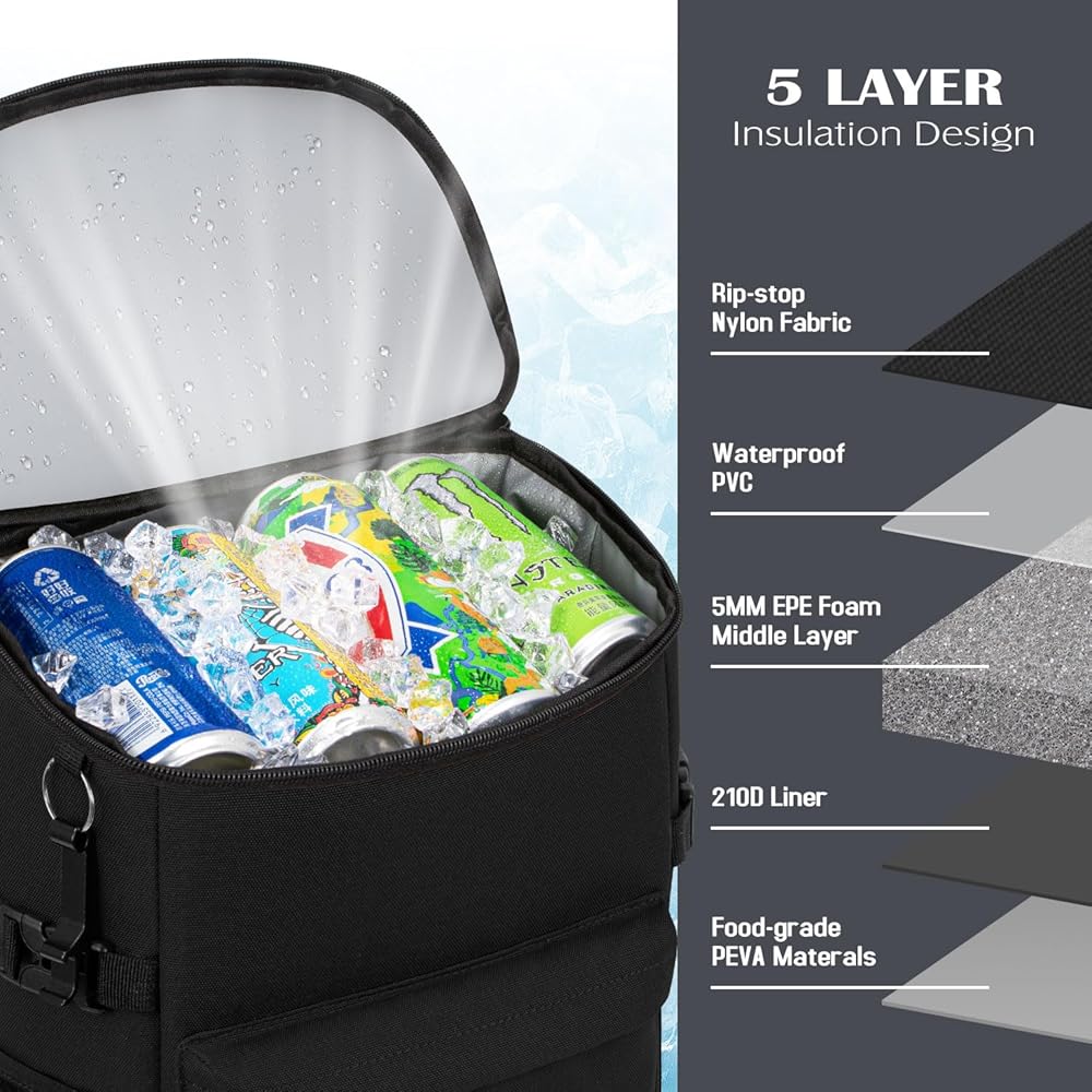 • 【حافظ على انتعاشك وبرودتك】: مصنوعة من مادة عازلة عالية الكثافة 8 مم وبطانة ممتازة، تحافظ حقيبة الظهر المبردة هذه على أغراضك باردة لمدة تصل إلى 20 ساعة، مما يضمن بقاء طعامك ومشروباتك في درجة حرارة مثالية.