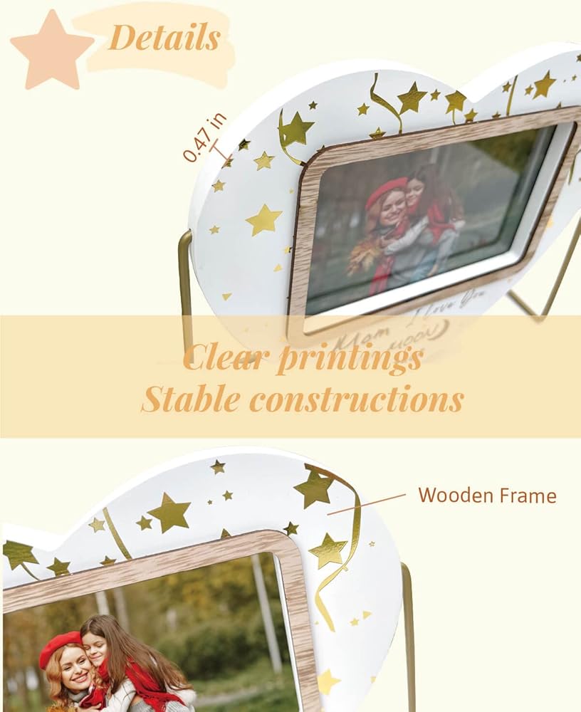 إطار صورة الأم - يمكن وضعه على سطح الطاولة بثبات باستخدام الدعامة المعدنية، بسُمك 0.47 بوصة، إطار الصورة القائم بذاته هذا قوي بما يكفي لتقديم هدية ثمينة حقًا ستعتز بها والدتك إلى الأبد.