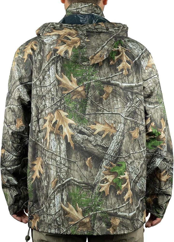 سترة مطر رجالي من LOOGU خفيفة الوزن، مموهة، معاطف مطر مقاومة للماء والرياح مع غطاء للرأس