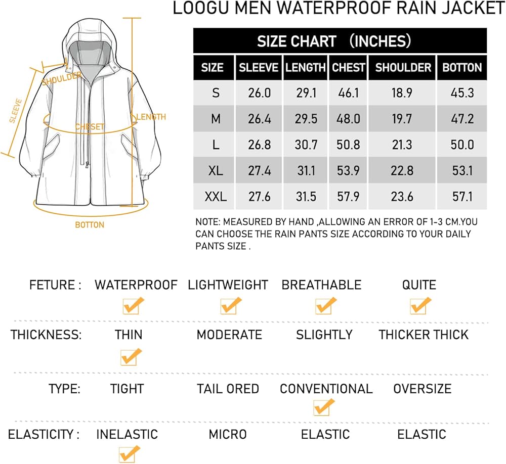 • 【المقاس وما بعد البيع】: معطف المطر الرجالي ذو مقاس فضفاض، ونقدمه من صغير إلى كبير جدًا لتوفير أقصى قدر من الراحة والملاءمة الفضفاضة، لذا يُرجى التحقق من جدول المقاسات الخاص بنا في الصورة أو أسفل وصف المنتج لتجنب غير مناسب. علاوة على ذلك، نحن نقدم خدمة عملاء محترفة قبل الشراء وبعده، واستمتع بضمان الرد على مدار 24 ساعة.