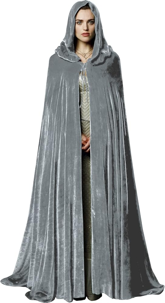 عباءة مخملية فاخرة للبالغين من UQJE مع غطاء رأس لمصاصي الدماء من القرون الوسطى للجنسين - رمادي