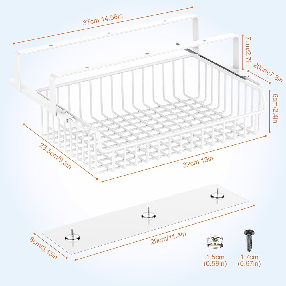 【طريقتان للتثبيت】: يأتي المنظم الموجود أسفل المكتب مع شريط لاصق قوي ومسامير قصيرة لتلبية الاحتياجات المختلفة. يمكن لدرج التخزين الموجود أسفل الطاولة المزود بشريط لاصق أن يحمل ما يصل إلى 11 رطلاً للاستخدام اليومي، بينما يمكن للبراغي حمل ما يصل إلى 22 رطلاً لجميع أنواع المكاتب أو الخزانات.