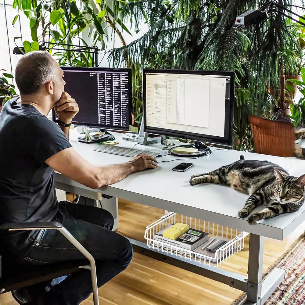 ENONCI درج تحت المكتب، تصميم منزلق، بدون حفر معدني تحت إدارة الكابلات المكتبية، سلة رف تخزين تحت المكتب، منظم درج تحت الطاولة للمكتب، المنزل، مساحة العمل، الخزانة