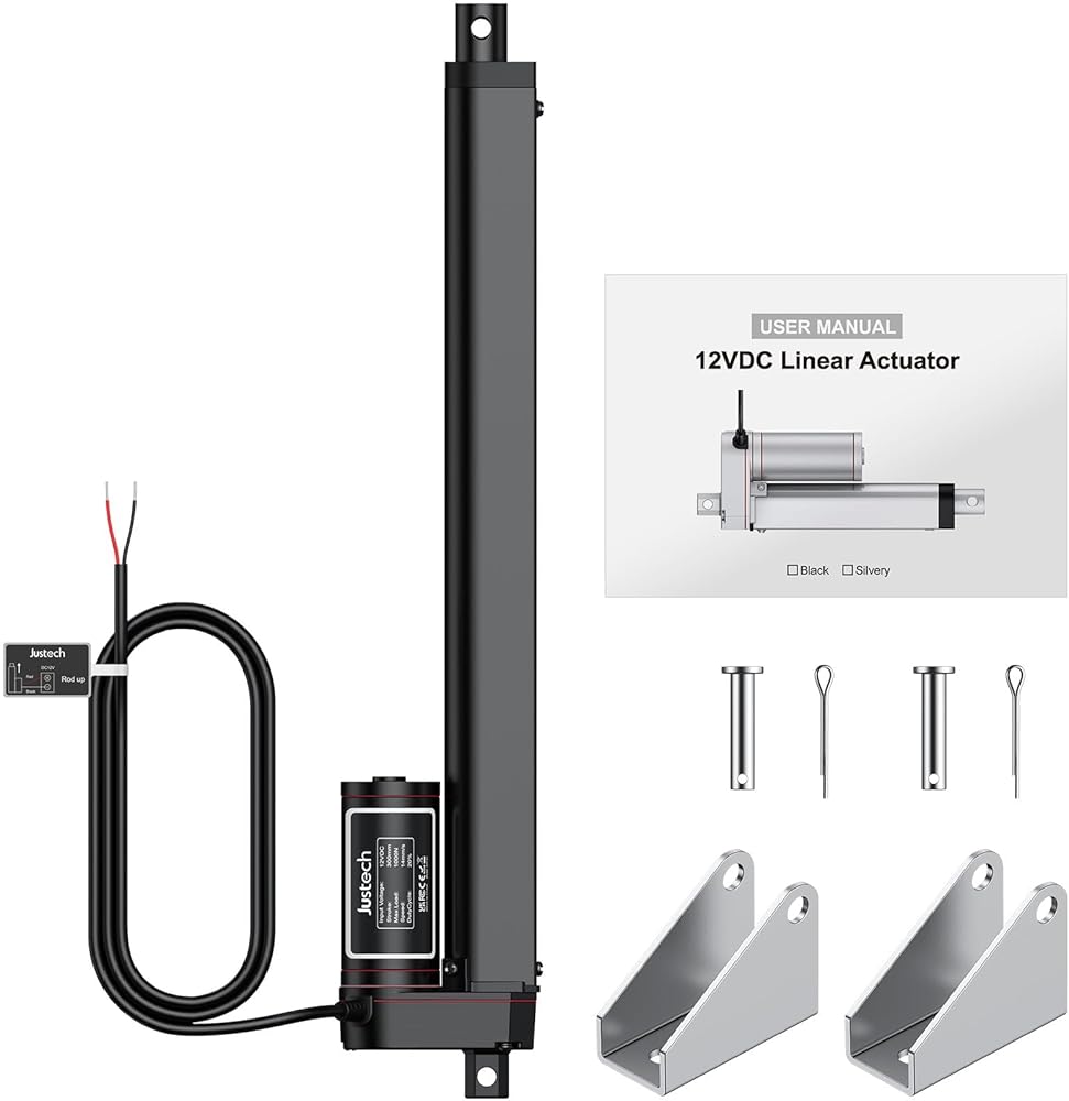 Justech 300mm محرك محرك خطي بحجم 12 بوصة ، محركات شديدة التحمل 1000N 225 رطل 12 فولت للسيارات التلقائية RV فتحات الباب الكهربائي الصناعي آلات الزراعة الصناعية شرك السيارات شحن البضائع الأسود