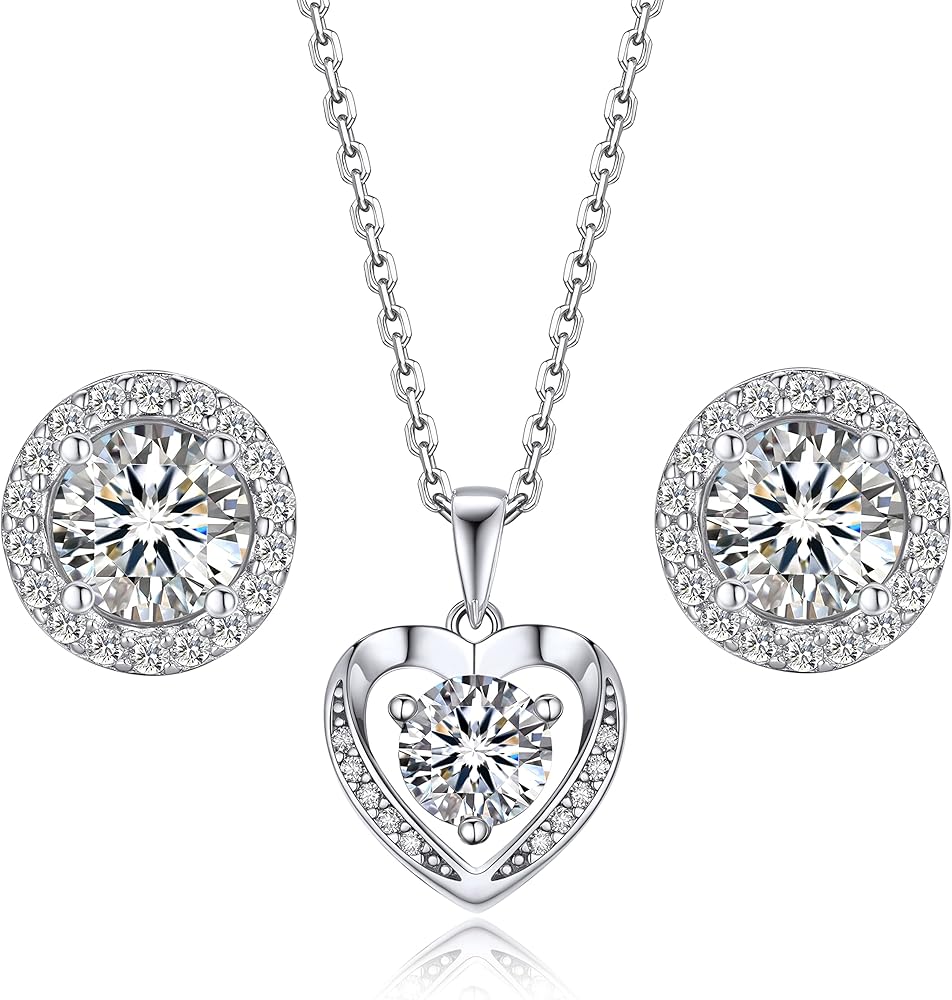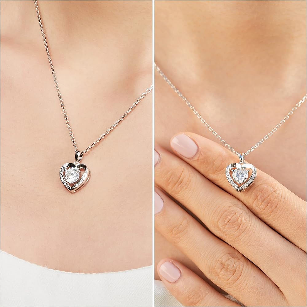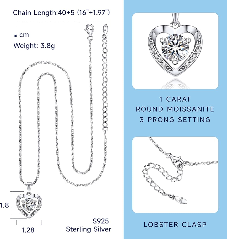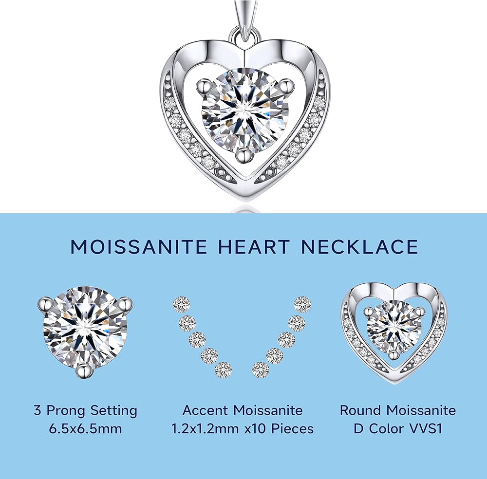❤️【Dainty Heart Pendant Necklace】 ➣ This heart necklaces for women is a perfect expression of love. Features a round brilliant cut centre moissanite 6.5mm/1ct 3 prong setting. With 10 accent moissanite. this pendant is suspended from a well-crafted S925 sterling silver chain necklace that can be worn at 16 or 18 inches.