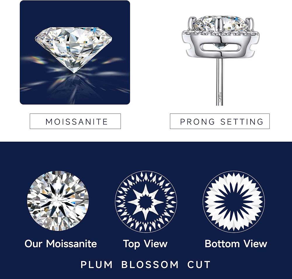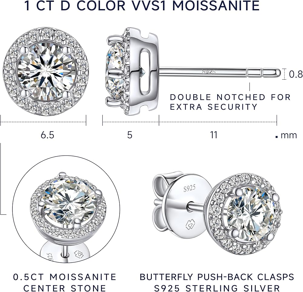 💎【Halo Stud Earrings】 ➣ With a halo of 0.11 ct micro-pave set moissanite that encompasses the centre 1ct 4 prong set moissanite diamond, this moissanite earrings create incredible brilliance.This round cut earrings are suitable for any occasions, capturing everyone's attention. Each earring with 1.11ct moissanite stone, total 2.22ct of pair.