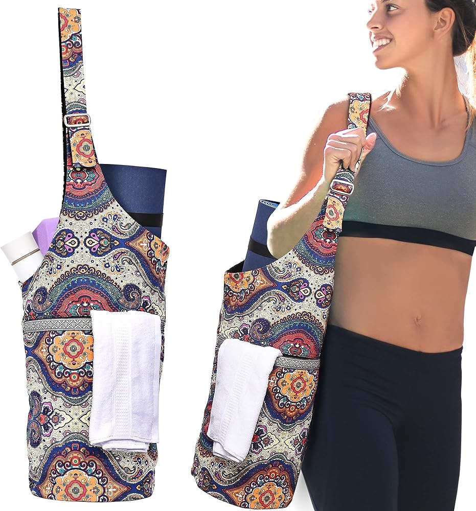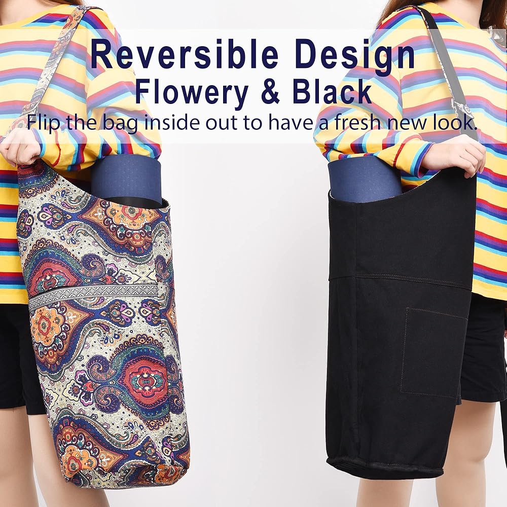 【تصميم ذو وجهين بلونين】حقيبة حمل بحزام كتف لليوجا سهلة ومحايدة للجنسين لجميع عشاق اليوغا. التصميم المنمق رائع بينما اللون الأسود يسهل تنسيقه مع ملابسك. إلى جانب استخدامها كحقيبة حمل لليوجا، يمكنك استخدامها كحقيبة رياضية وحقيبة تسوق وحقيبة شاطئ وحتى حقيبة حفاضات.