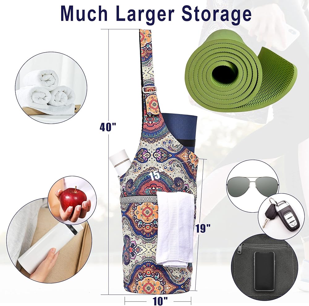 【حجم أكبر】بمقاس 101.6 سم × 38.1 سم، تناسب حقيبة اليوجا سجادة اليوجا الأكثر سمكًا والأعرض بسهولة. تأتي حقيبة اليوجا مع جيوب ومقصورات تسمح لك بتخزين معدات اليوجا وملحقاتها بما في ذلك مناشف سجادة اليوجا ومناشف الوجه والحمام أو حتى تغيير الملابس بعد التمرين.