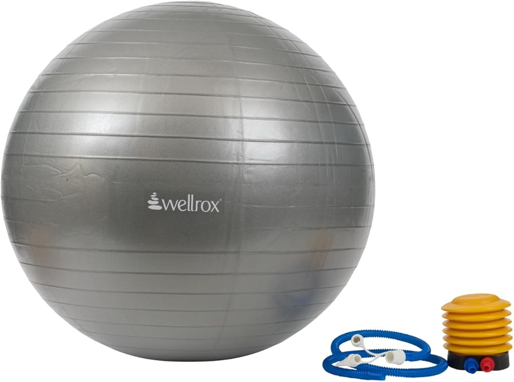 Introducing the WELLROX Exercise Ball with Pump, a versatile 21.6-inch fitness tool that adapts to various exercise routines and wellness needs. This multipurpose ball is also recognized as a yoga ball, pregnancy ball, birthing ball, balance ball, stability ball, or therapy ball, catering to a wide range of fitness preferences. Carefully designed, the Wellrox yoga ball accommodates diverse exercises, from gentle core strengthening to more intense workouts. Beyond the gym, it can serve as an innovative alternative to traditional office chairs. Tailored to cater to your fitness interests, whether it's Pilates, yoga, stability routines, pregnancy exercises, or postpartum recovery. Our comprehensive total body balance ball fitness kit is designed to address your specific goals. Our portable exercise kit combines a convenient quick pump and the versatile yoga ball. This pairing ensures easy transportation and a simple setup.