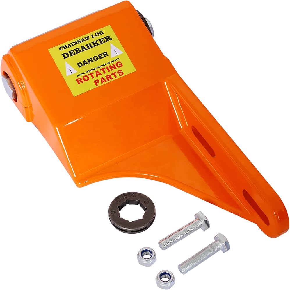Easily mounts on any saw bar. You can make notches or debark poles for barns, fences, bridges, landscaping, log home construction and more The debarker comes with universal spline/sprocket system, which accommodates 3/8″ and .325 pitch saw chain and two 3-1/4″ planer blades Widely use, is essential for log home builders, sawmill operators, farmers, and ranchers,make fast work of removing bark from fence posts, cabin logs, or bridge and barn framing; Powder-coated, resist rust and corrosion for lasting use. These debarker g are made with a highly visible orange coating for easy noticeability Sharp blades use the power of your chain saw to cut through bark and wood, or make grooves or notches