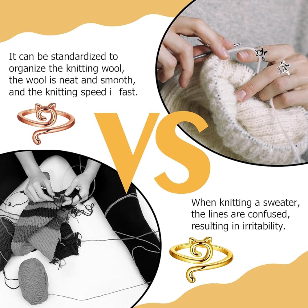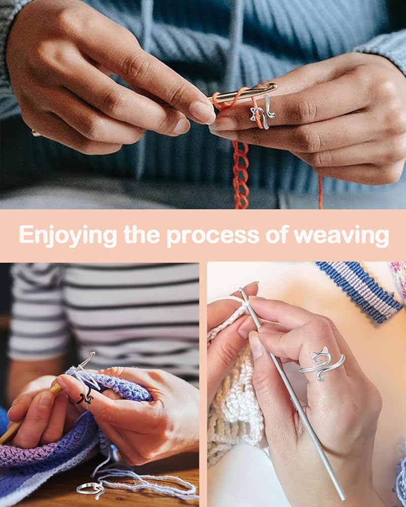 🐈【تصميم قابل للتعديل】يمكن تعديل حلقة الكروشيه بحرية وفقًا لحجم أصابعك (0.73-0.94 بوصة)، كما أن حلقة الغزل هذه سهلة الارتداء والخلع. وزن حلقة الحياكة هو 3 جرام/القطعة فقط، خفيف الوزن ومريح لك لحمله في أي وقت وفي أي مكان.