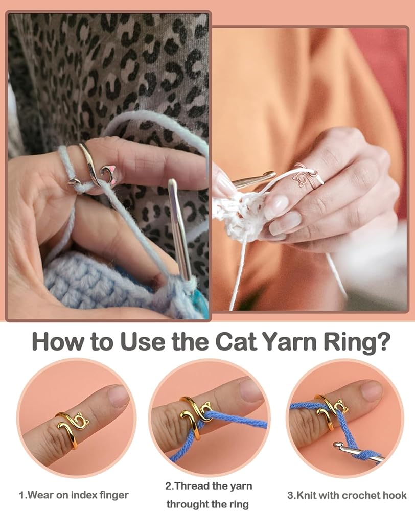 🐈【خامة ممتازة】حلقة الكروشيه هذه مصنوعة من مادة سبيكة عالية الجودة مع زخرفة على شكل قطة لن تسقط، متينة ومقاومة للصدأ. لف خيوط الحياكة الخاصة بك حول ملحقات ومستلزمات الكروشيه، مما يجعل التحكم في خيوط الحياكة الخاصة بك أسهل ويجعلك متماسكة بشكل أسرع عند حياكة الأوشحة والبلوزات.