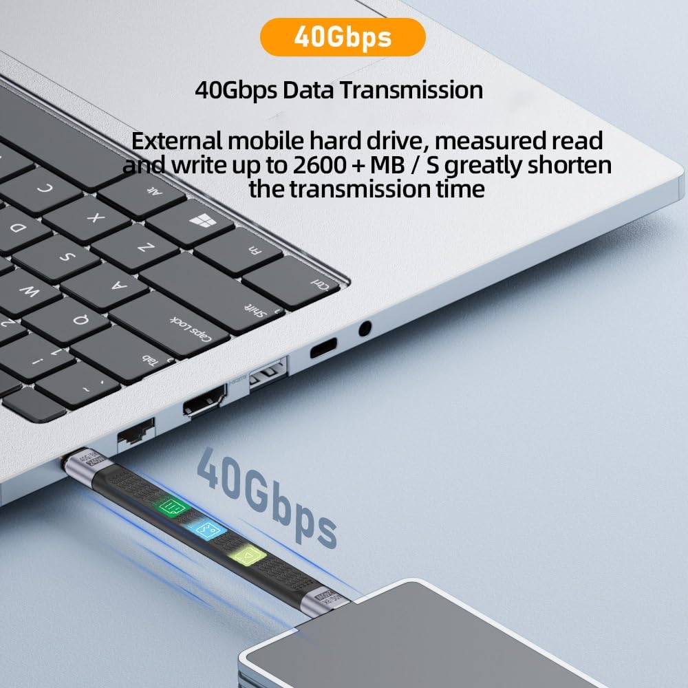 كابل Thunderbolt 4 قصير يمكن أن يصل إلى سرعة نقل تصل إلى 40 جيجابت في الثانية: يمكن استخدامه مع محرك أقراص ثابت خارجي لتحقيق سرعات قراءة وكتابة مُقاسة تصل إلى 2600 + ميجابايت/ثانية، مما يدعم نقل الموسيقى أو الأفلام أو مواسم كاملة من البرامج التلفزيونية في ثوانٍ بسرعة 40 جيجابت في الثانية. قادر على تلبية احتياجات النقل الأساسية وتزويدك بالكفاءة في العمل واللعب!