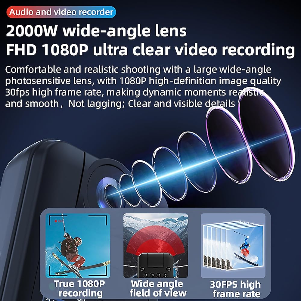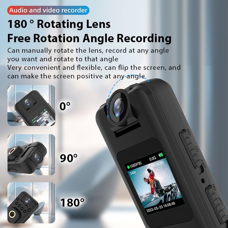 [عدسة واسعة الزاوية/عدسة دوارة 180 درجة] --- تسجيل فيديو فائق الوضوح 1080 بكسل: تصوير مريح وواقعي مع عدسة حساسة للضوء واسعة الزاوية، مع جودة صورة عالية الوضوح 1080 بكسل بمعدل إطار مرتفع 30 إطارًا في الثانية، مما يجعل اللحظات الديناميكية؛ تسجيل زاوية الدوران الحر: يمكن تدوير العدسة يدويًا، والتسجيل بأي زاوية تريدها. مريح للغاية ومرن، يمكنه قلب الشاشة، وجعل الشاشة إيجابية في أي زاوية.