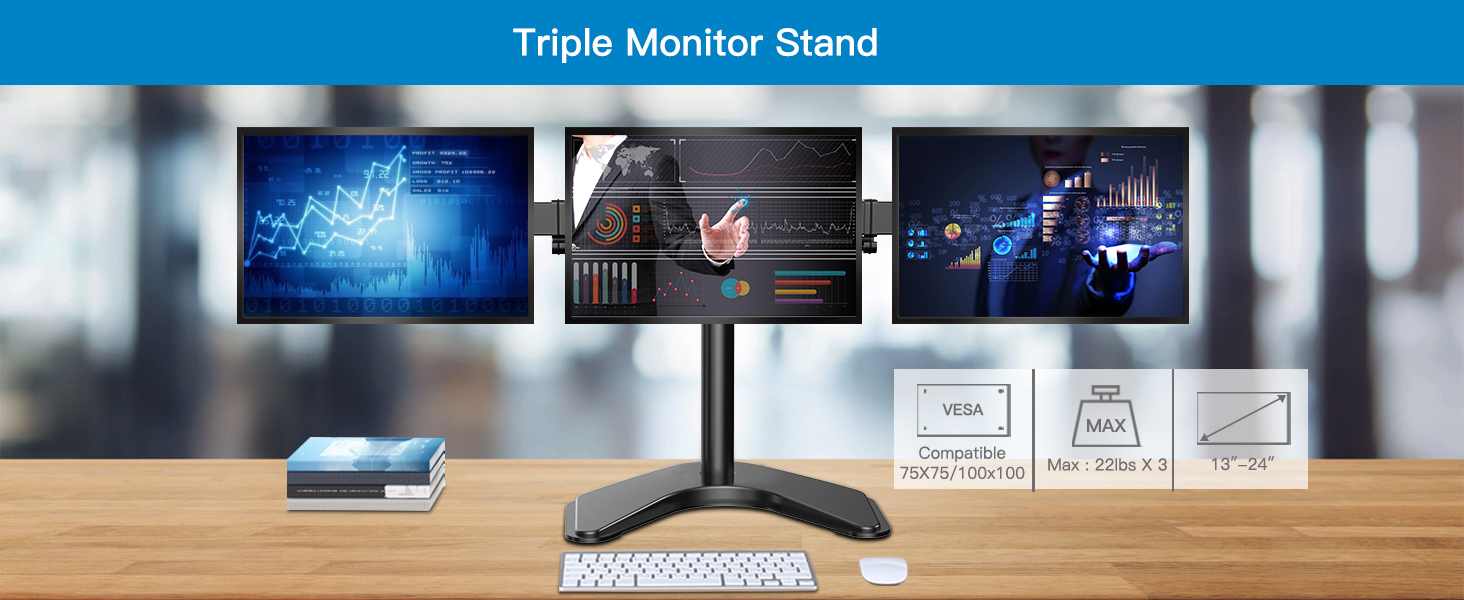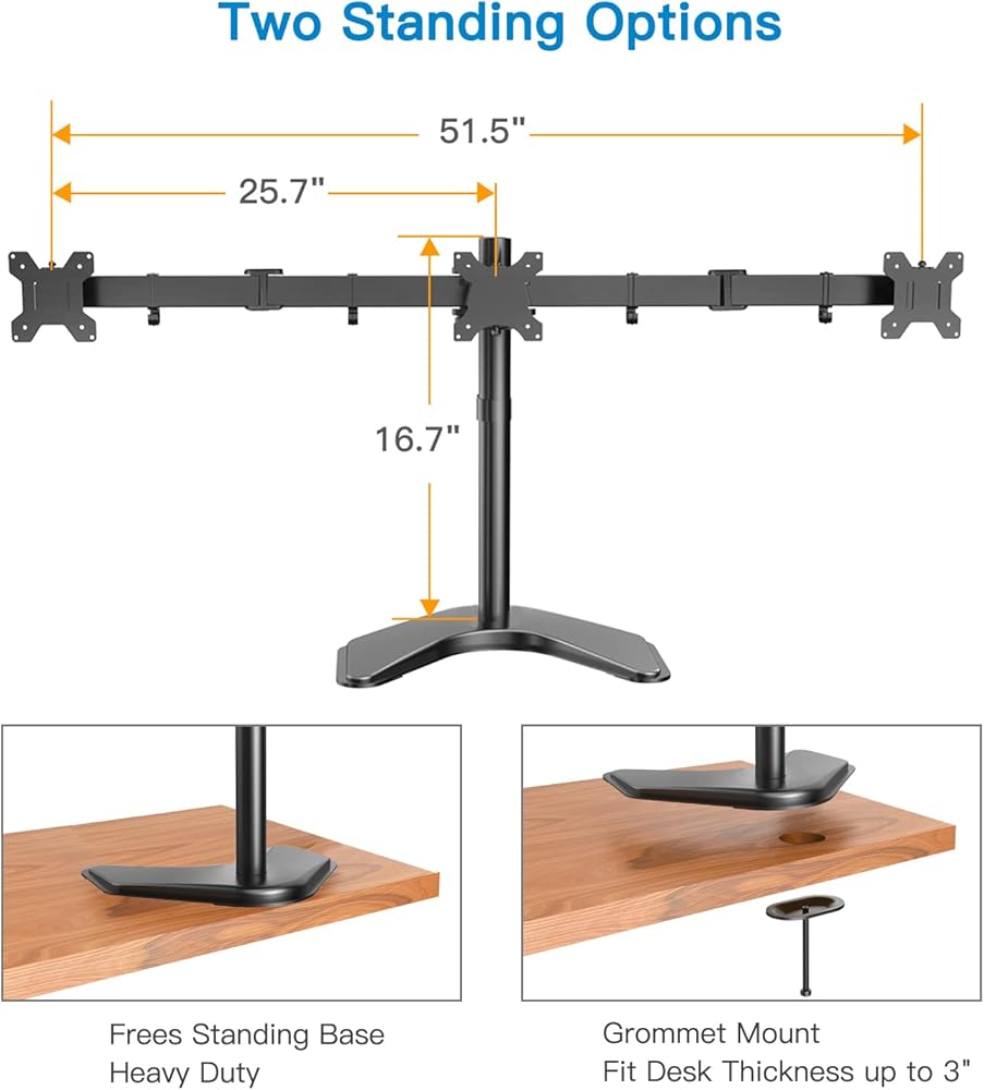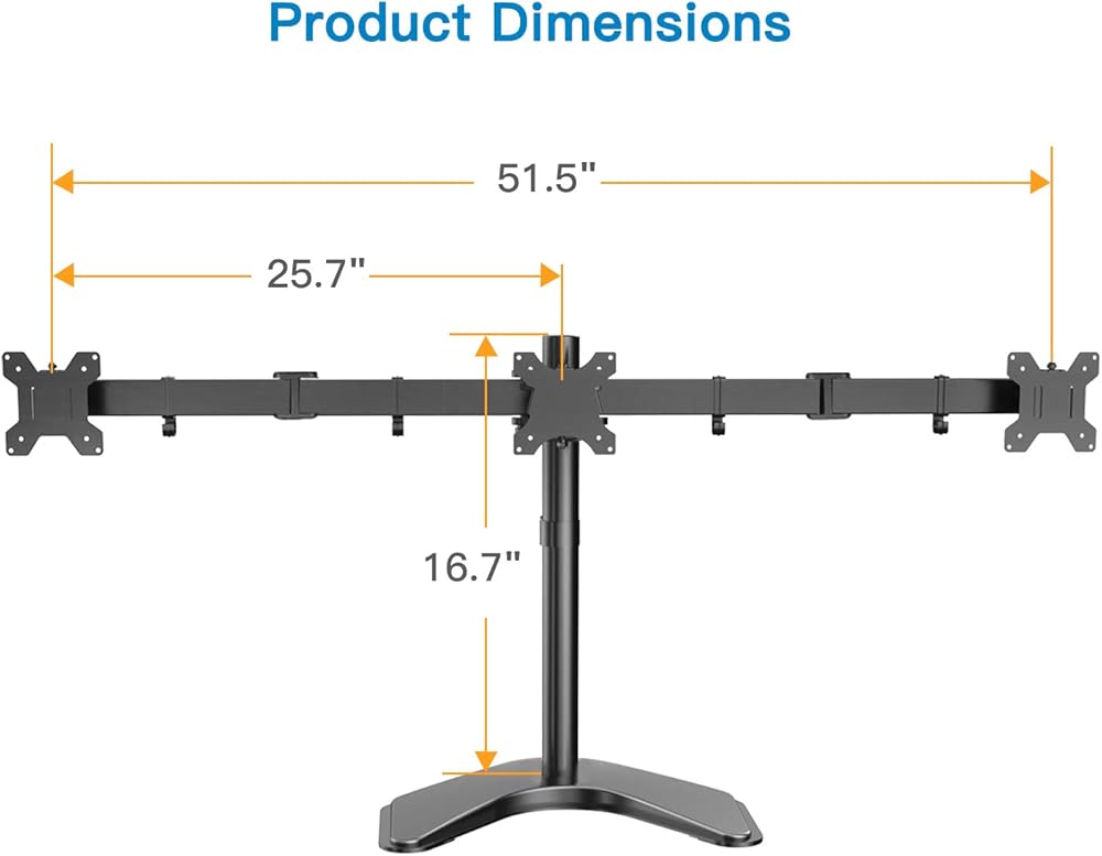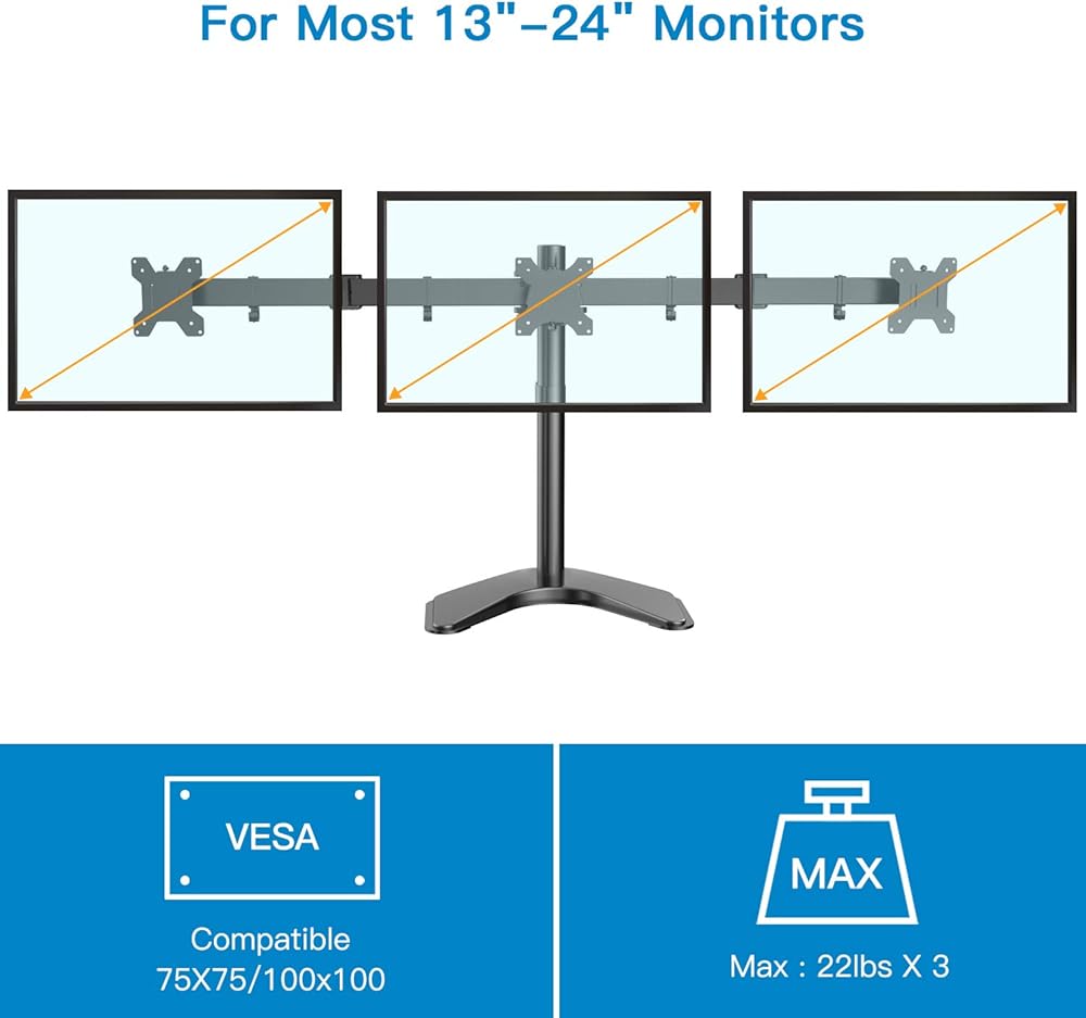 يناسب 3 شاشات مقاس 13 بوصة إلى 24 بوصة - حامل الشاشة الثلاثي هذا يناسب 3 شاشات كمبيوتر مقاس 13 بوصة إلى 24 بوصة ووزن 22 رطلًا مع فتحات تثبيت 75 × 75 مم و100 × 100 مم