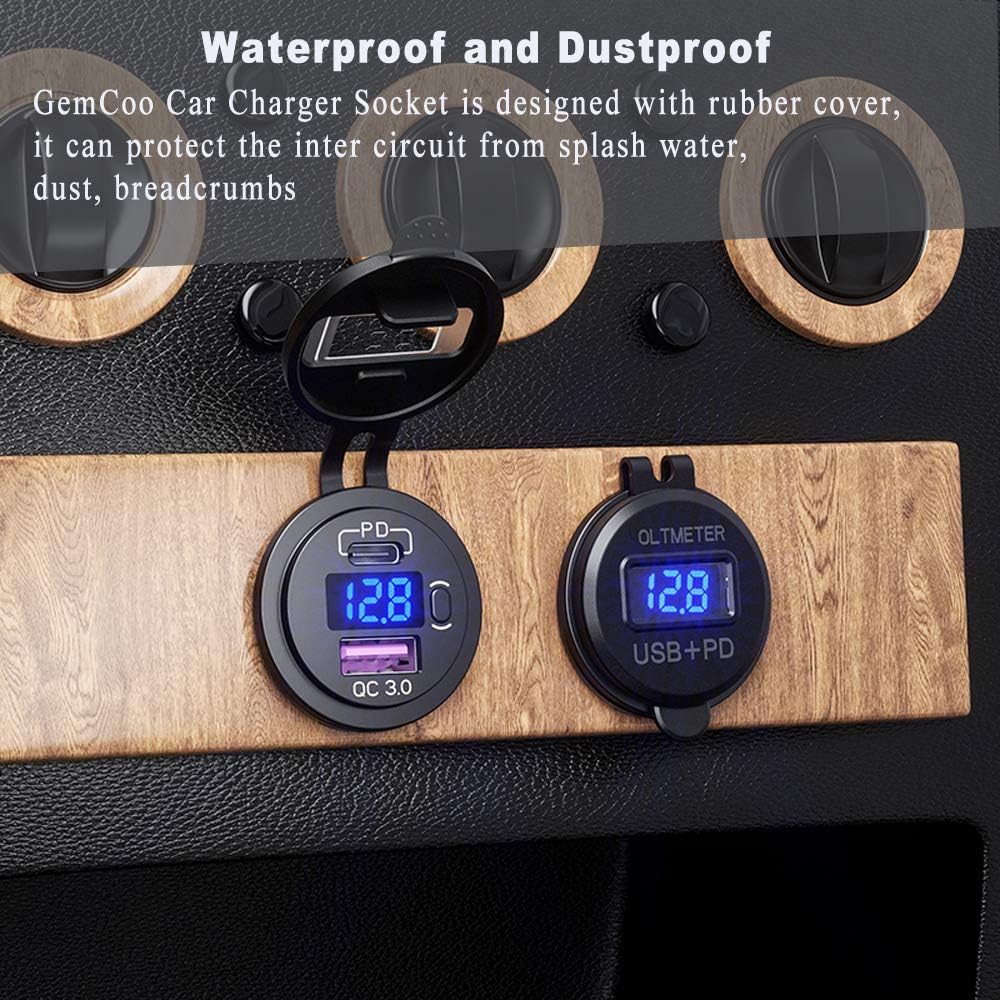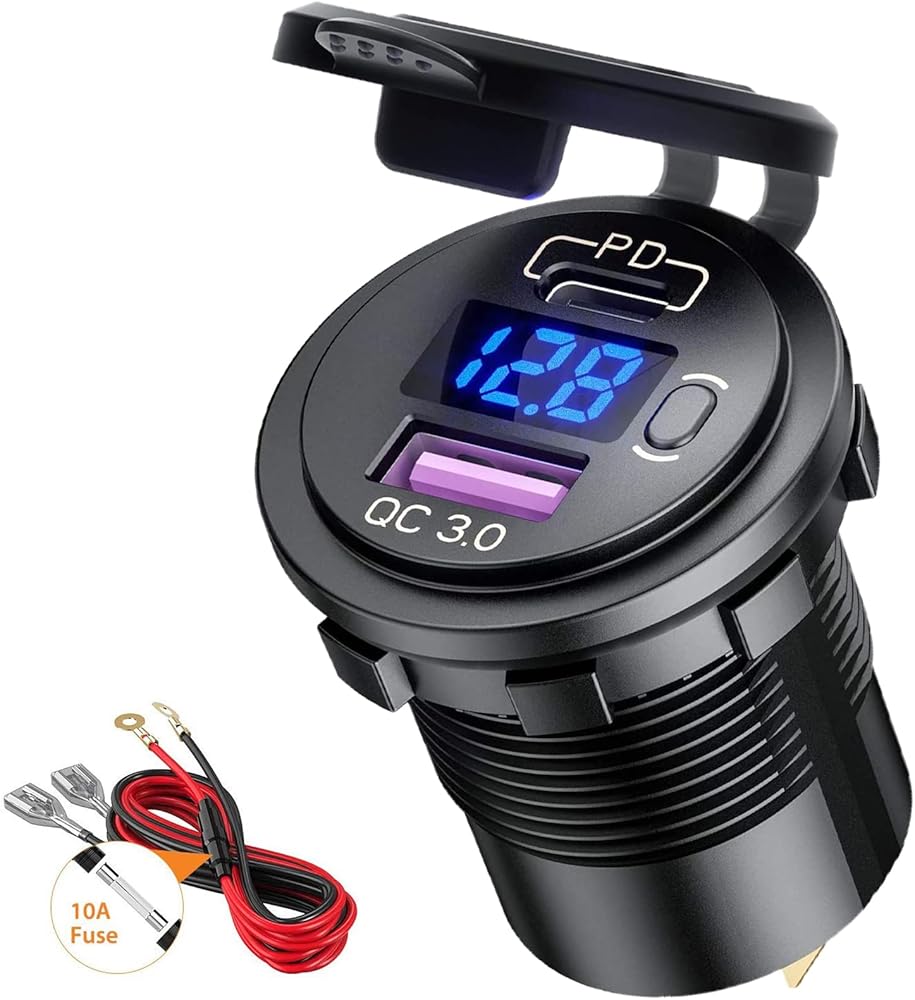 مقبس شاحن سيارة USB من النوع C PD وQC 3.0 شاحن سريع مقبس مخرج طاقة السيارة مع مفتاح تشغيل/إيقاف وفولتميتر LED مقاوم للماء 12 فولت/24 فولت للدراجات النارية البحرية RV ATV