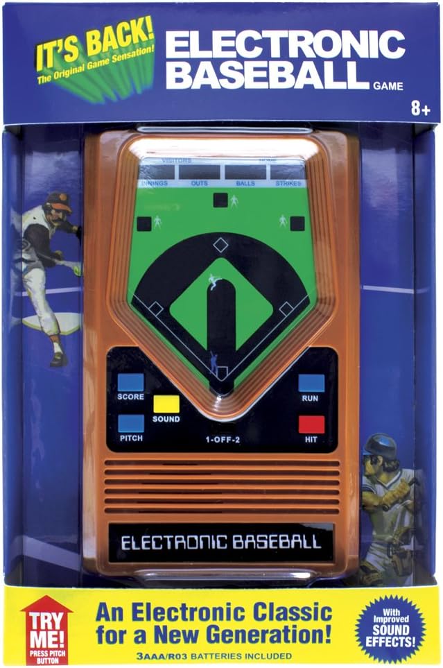The 70's game sensation is back just like you remember, now with improved sound effects. Get ready to pitch, hit, and run around the bases to score your homerun! Features 1 or 2 player game and 2 different play modes.