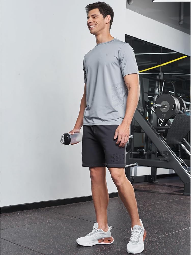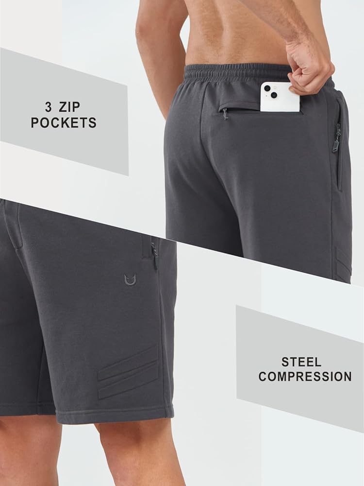 الميزة - شورت رياضي رجالي بمقاس عادي مثالي للأنشطة الرياضية. حزام خصر مطاطي مع رباط قابل للتعديل لملاءمة مثالية. تمت حياكته بشكل متين ويتحمل الغسيل المتكرر. جيبان جانبيان كبيران بسحاب وجيب خلفي بسحاب، مريح وآمن لوضع هاتفك أو مفاتيحك أو محفظتك أثناء التمرين