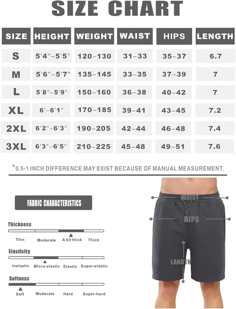 خامة عالية الجودة - 64.5% قطن، 35.5% بوليستر. شورت رجالي من القطن مع تمدد يمنع التكديس والانكماش. نسيج ماص للرطوبة يسمح بالتهوية بشكل جيد أثناء تواجدك في صالة الألعاب الرياضية. شورت رياضي ناعم ومريح للرجال لارتدائه عند الاسترخاء