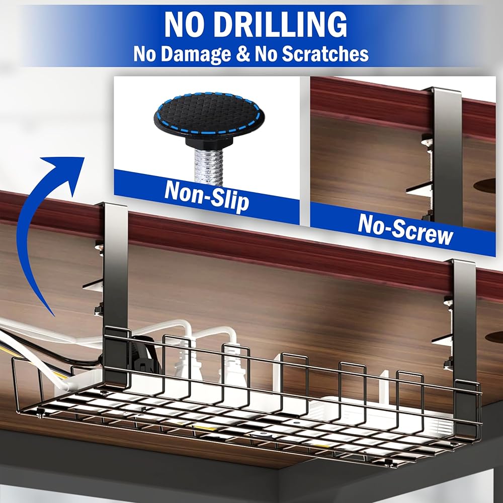 • 🔩 [بدون حفر] إدارة كابلات Tsyfro أسفل المكتب تحمي مكتبك الثمين دون حفر. نحن نقدم مشابك متميزة مع وسادات مطاطية ناعمة للتثبيت المستقر ومنع الخدش. يتم تضمين تعليمات مفصلة لسهولة متابعة التثبيت