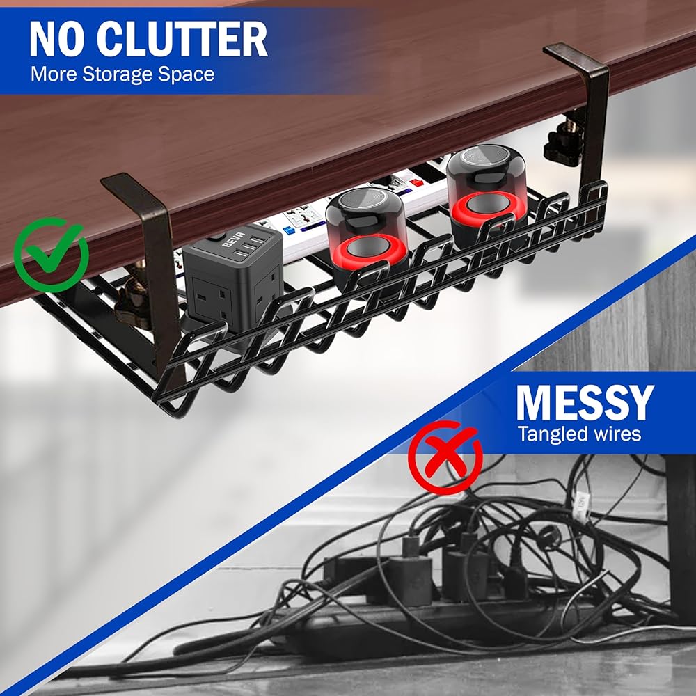 صينية إدارة الكابلات تحت المكتب من Tsyfro | 16.5 بوصة طول × 6.29 بوصة عرض | لا الحفر | لا فوضى | تتضمن مشابك كابلات وروابط ومسامير ممتازة | مثالي للمنزل والمكتب | يناسب تمامًا أي مكتب