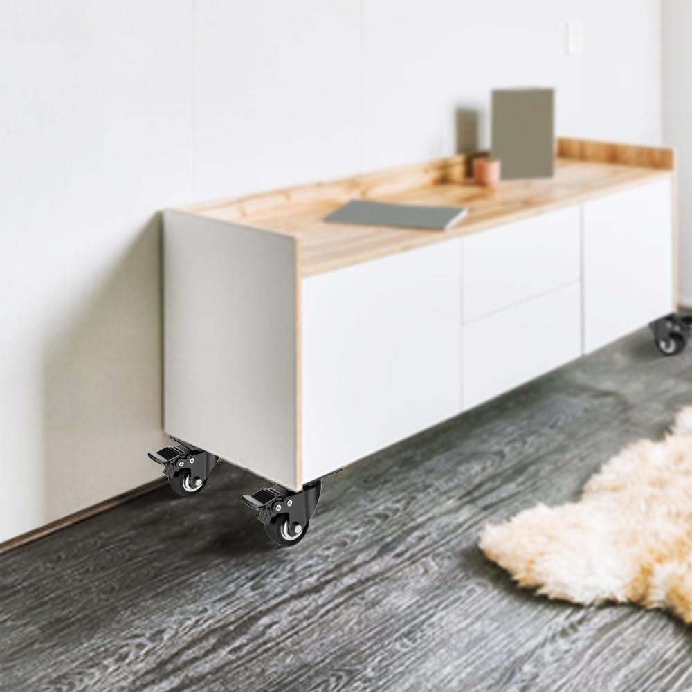 مجموعة Cezoyx مكونة من 8 عجلات دوارة مع فرامل، عجلة لوحة شديدة التحمل مقاس 2 بوصة، عجلات أثاث متينة بقفل لا تترك علامات، عجلات سوداء للعربة والأثاث ومنضدة الأدوات