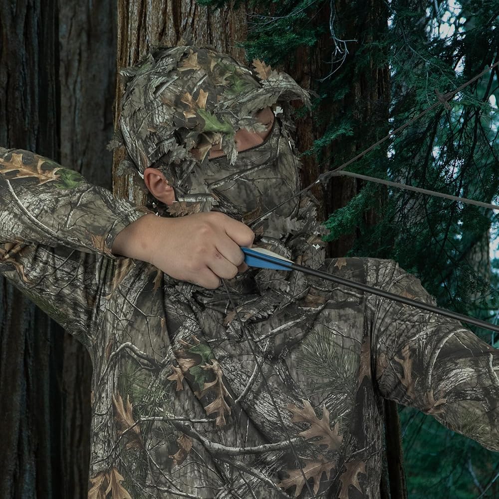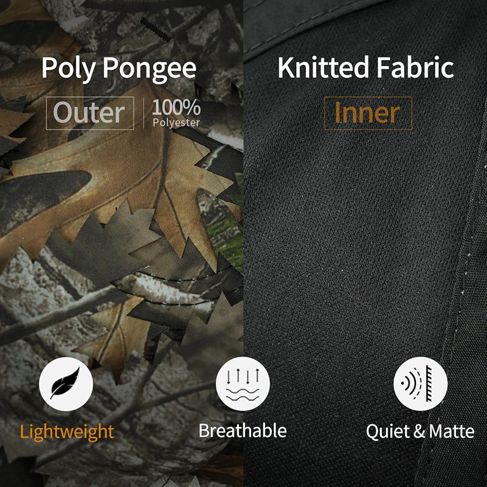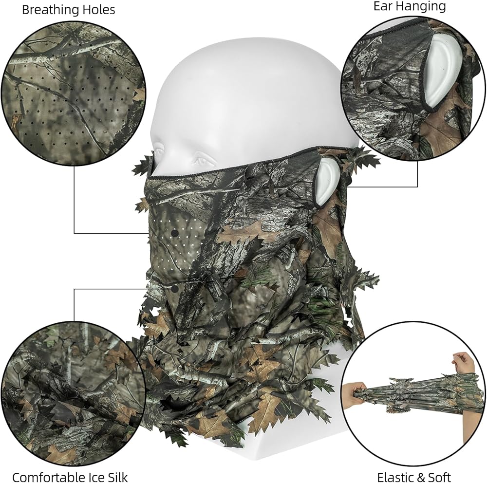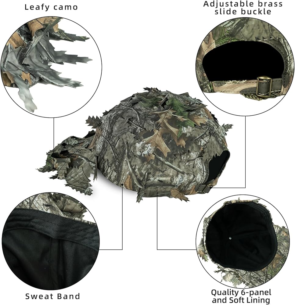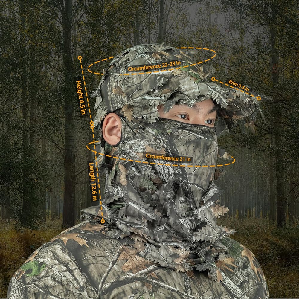 LOOGU 3D leafy ghillie hat with camo mask is designed for outdoor enthusiasts. They are made of durable, breathable and quick-dry fabric to keep cool and comfortable all day. Ideal for hunting, spring turkey season, airsoft paintball, shooting, tactical training, fishing, or more.