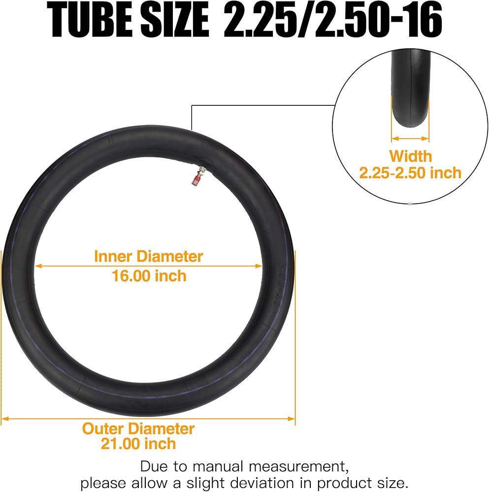 • الأنبوب الداخلي 2.25/2.50-16 مع جذع صمام مستقيم، متوافق مع حافة 16 بوصة للطرق الوعرة موتوكروس دراجة نارية الترابية، سوف يناسب أيضًا: 2.25-16، 2.25x16، 2.50-16، 2.50x16، 70/90- 16، 80/80-16، 80/90-16، 90/80-16. لا تناسب 16x2.25، 16x2.50