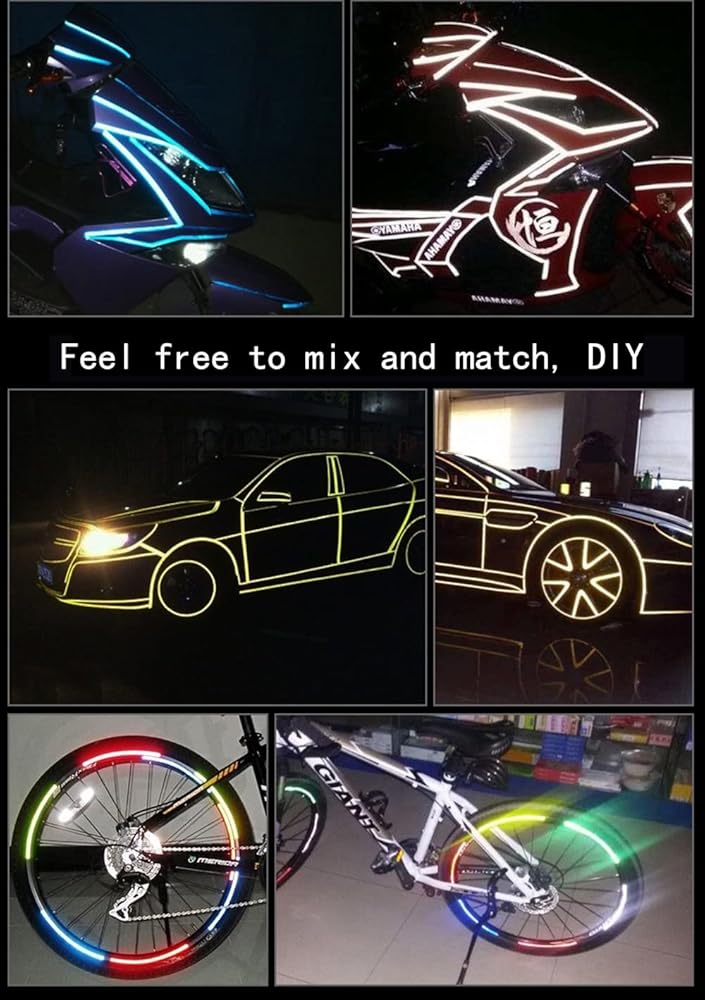 【Widely Application】A reflective tape plays a warning and reminder role for the road transport facilities, cars, vehicles, bikes, bicycles, motorcycles etc. It's also perfect for DIY Decoration.